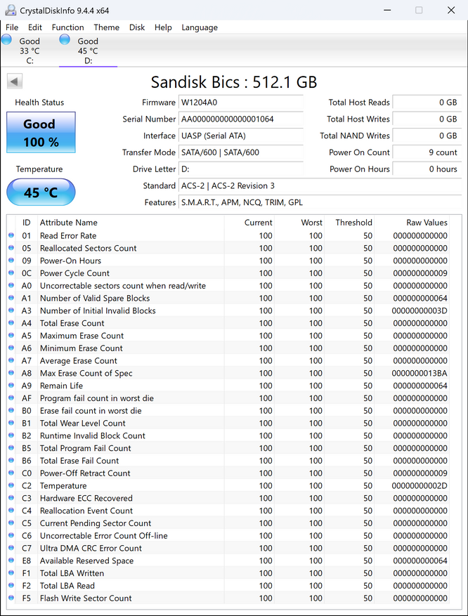 Что в моём случае? Silicon Motion SM2259XT2 — пожалуй, в последнее время самый массовый в недорогих продуктах. И очень часто в паре с QLC-памятью, но мне относительно повезло — пусть и старая, но TLC SanDisk BiCS4. Кристаллы по 512 Гбит, но собранные в сборки по 2 Тбит, коих две штуки — в общем, в корпус отлично лезет, поскольку упаковывается даже в одну микросхему. И 1 ТБ на такой базе получается легко, а бóльших ёмкостей в этой линейке нет. Сразу предупреждаю, что пошедшим по моим стопам может повезти и меньше. Впрочем, сам контроллер довольно тормозной, так что и с QLC ведёт себя не сильно хуже… точнее, с TLC не сильно лучше.