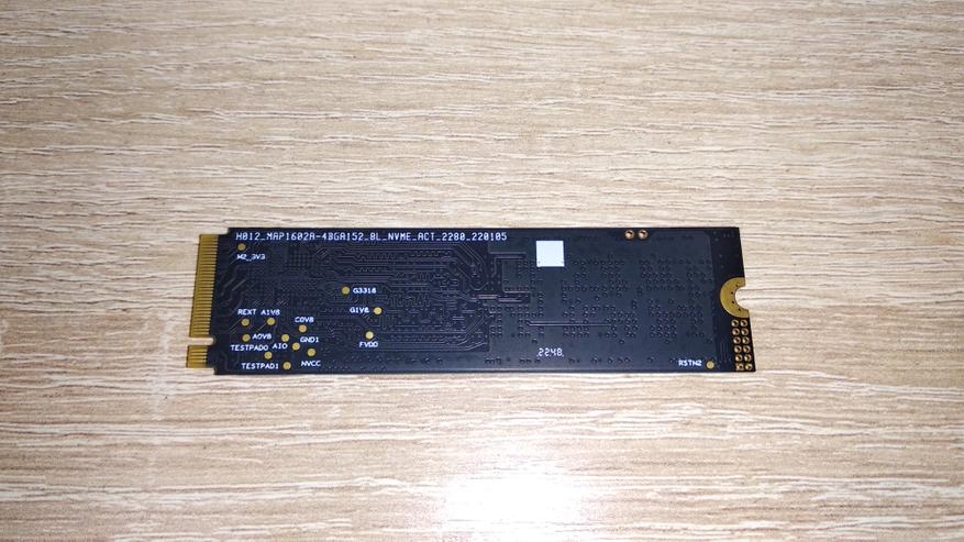 Радиатора на накопителе нет, лишь наклейка. Блеска я на торце не увидел, а значит она не фальгирована, т.е. просто пластиковая. Все компоненты находятся на одной стороне, толщина и длина стандартная, а значит и совместимость тоже максимальная, т.к. иногда массивные радиаторы мешают установке, а точнее закрытию крышек.