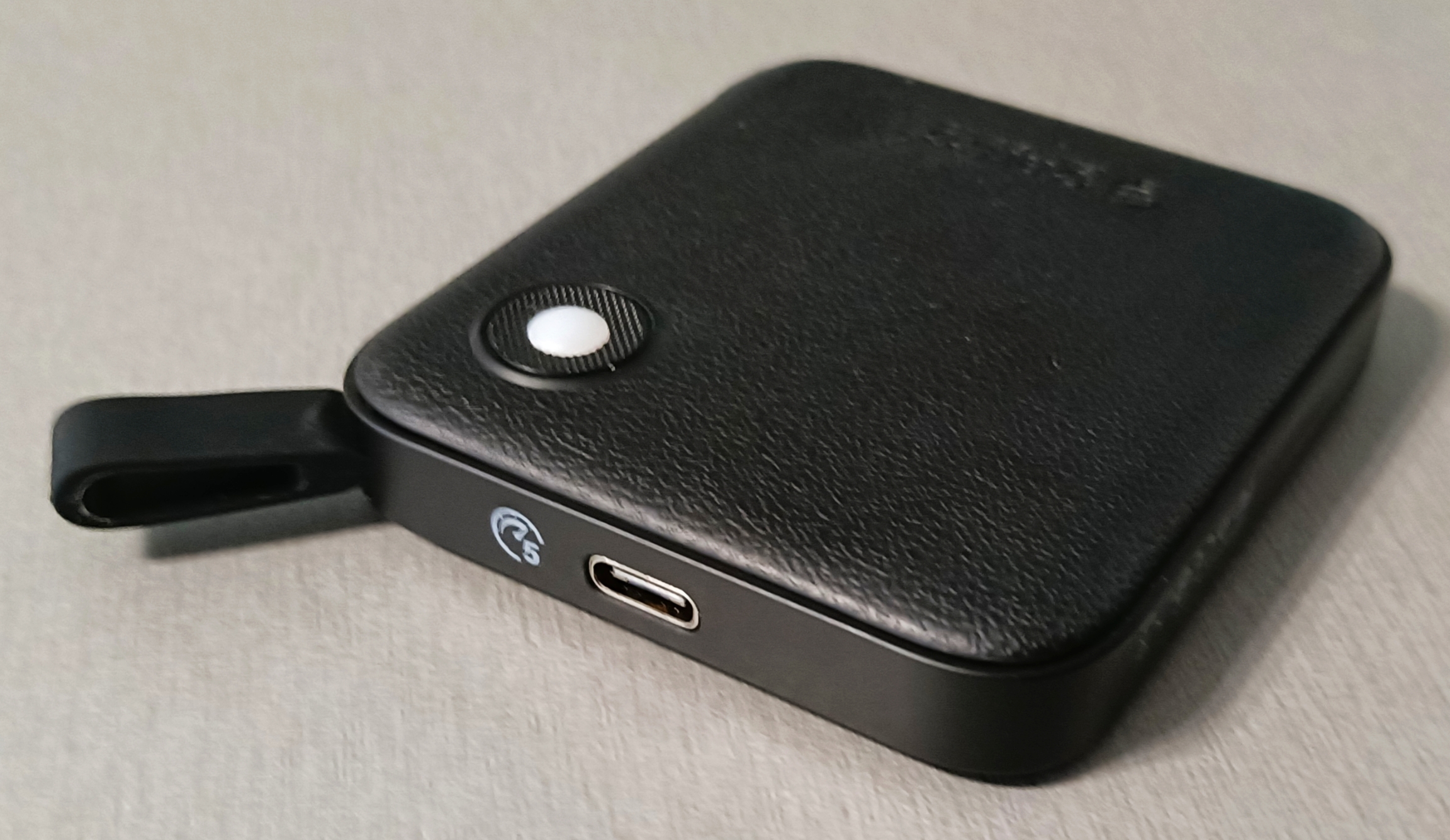 Кроме разъёма USB-C, на боковых гранях ничего. Разве что силиконовая петелька — при помощи которой устройство можно, например, куда-нибудь повесить. Не на ключи, конечно — для брелка размеры слишком велики, но пристегнуть к карабину внутри рюкзака, чтоб не болтался, впихнув туда же в петельку кабель — можно.