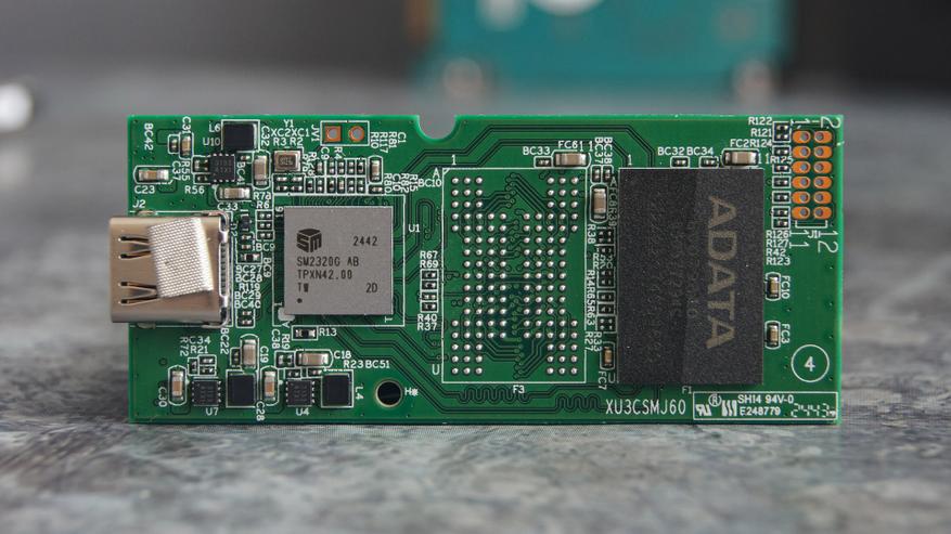 Контроллер оснащен четырьмя каналами и поддерживает интерфейс USB 3.2 Gen 2 x 2 (до 20 Гбит/с). Согласно технической документации, теоретическая максимальная скорость внешнего SSD, основанного на данном контроллере, составляет порядка 2100 / 2000 МБ/с для операций последовательного чтения и записи соответственно. Эти показатели близки к заявленным производителем характеристикам для модели ADATA SD810.