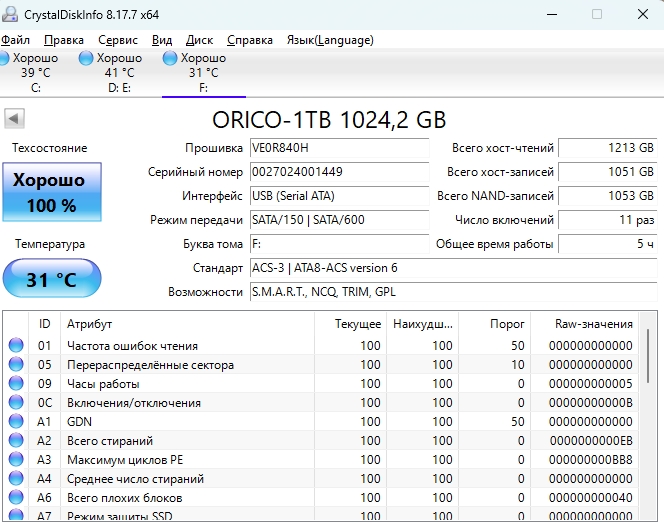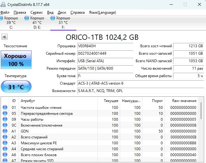 Обзор PSSD накопителя Orico eFOX B5Plus на 1 ТБ