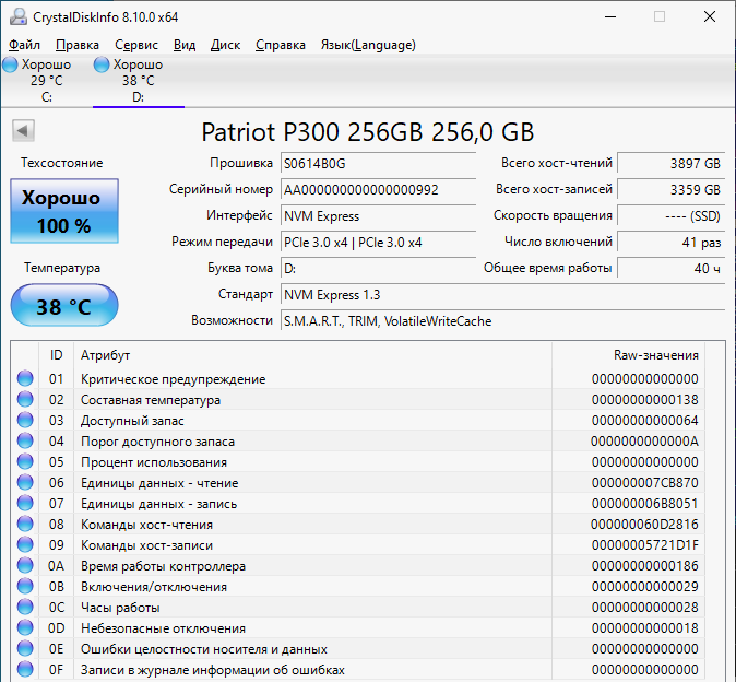 Температура оценивалась по собственному датчику SSD с помощью утилиты CrystalDiskInfo.