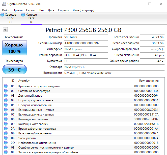 В качестве подопытного SSD был взят бюджетный Patriot P300 256 GB, выглядит он так: