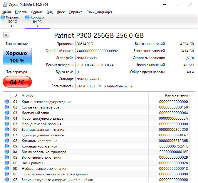 Вот, к примеру, для протестированного с радиатором накопителя Patriot P300 радиатор не очень нужен: максимальный нагрев без радиатора составил только 64 градуса, что никак не угрожает его жизни и здоровью (радиатор был куплен «на вырост» — последующий переход на более ёмкий и быстроходный SSD). И, даже если допустить, что внутри корпуса компьютера температура будет ещё градусов на 10 выше, то ничего страшного не произойдёт.