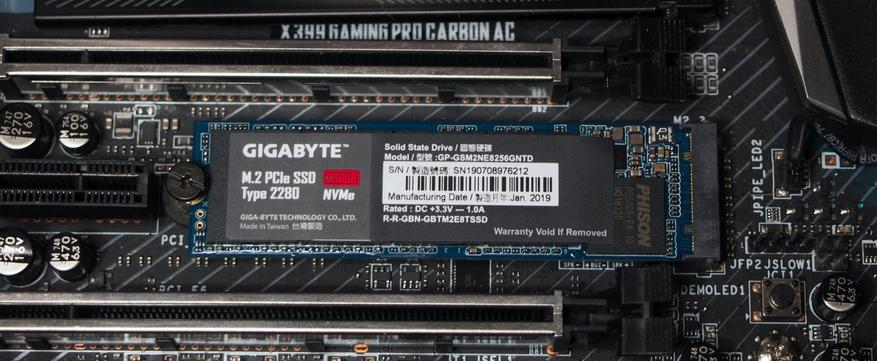 Все, что требуется для накопителя GIGABYTE M.2 PCIe SSD 256 Гб, это материнская плата с М.2 разъемом и поддержкой по нему передачи данных через интерфейс PCIe. Также потребуется две свободные линии PCI Express процессора. В случае с AMD Ryzen Threadripper в этом вопросе нет никаких проблем, поскольку процессоры этой платформы имеют 64 линии PCIe.
