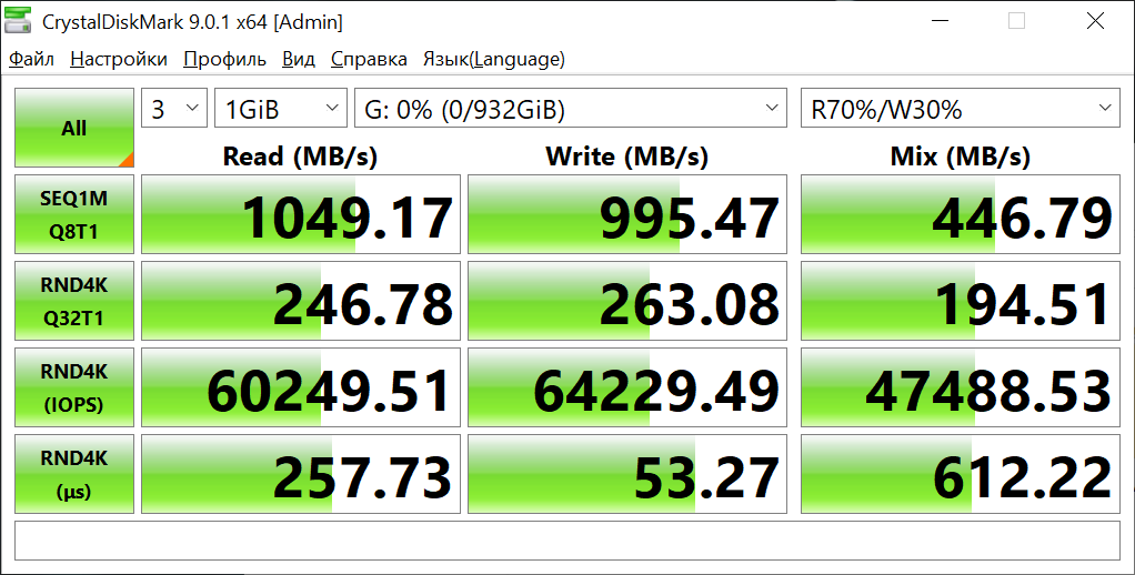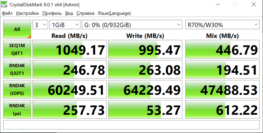 - Чтение — 1049.17 МБ/с
