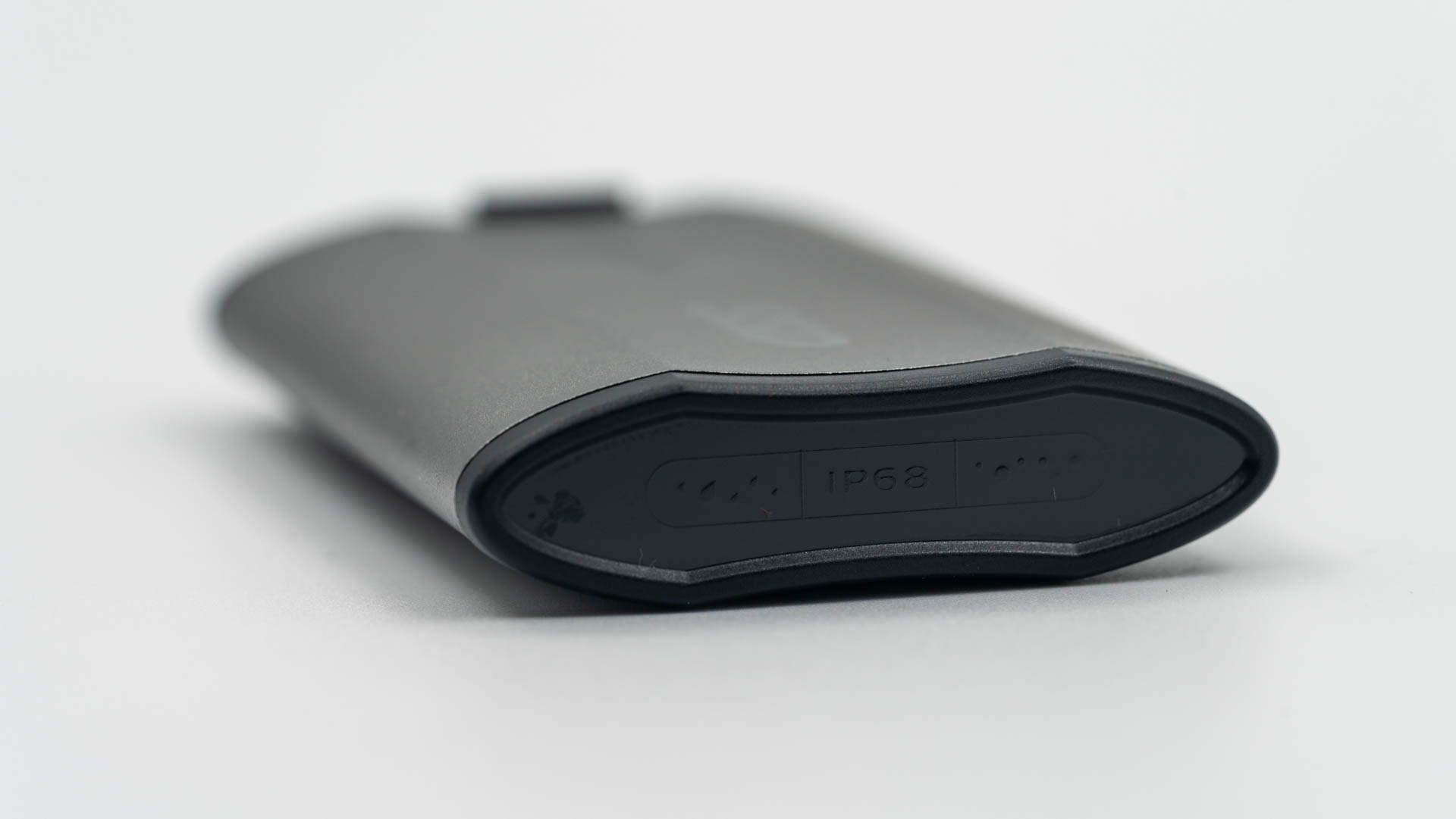 На левой торцевой стороне есть небольшой выступ с помощью которого можно открыть крышку, скрывающую порт USB-C. Крышка оснащена мягким уплотнителем из резины или силикона, что обеспечивает герметичность.