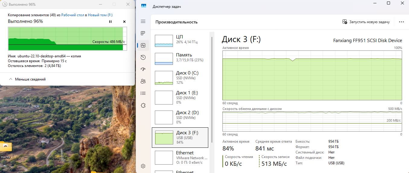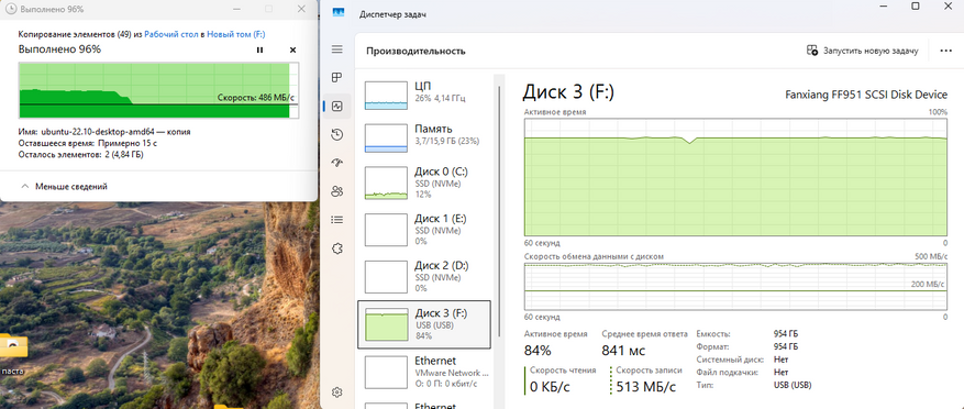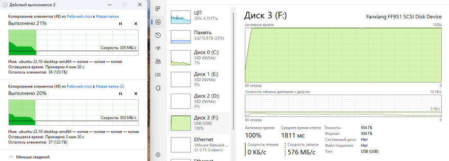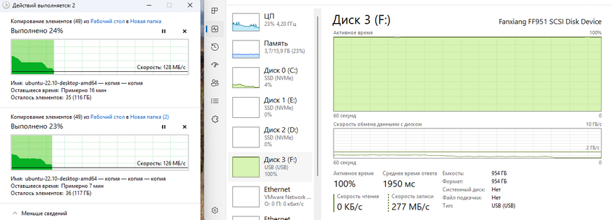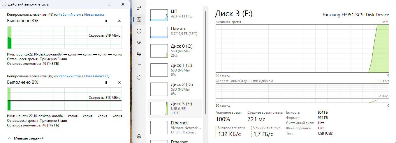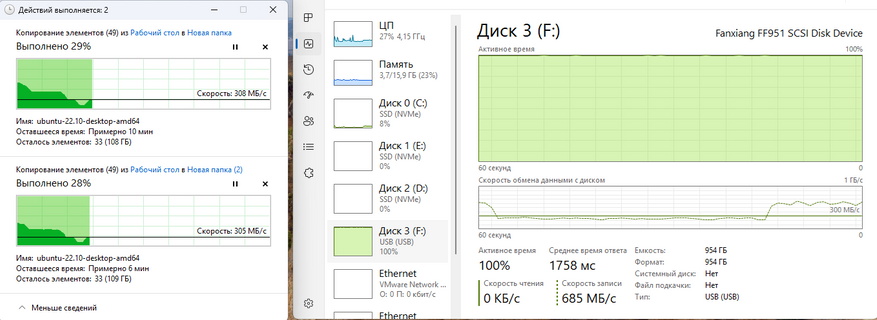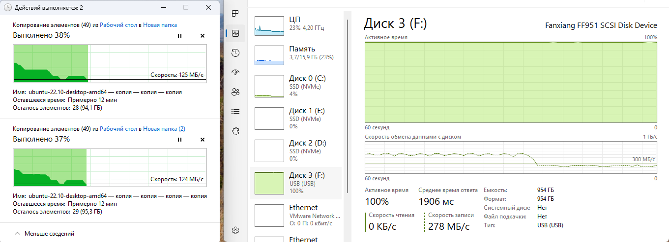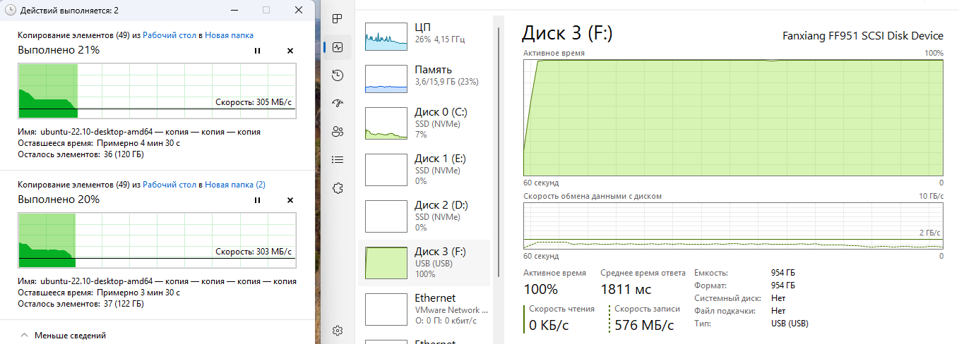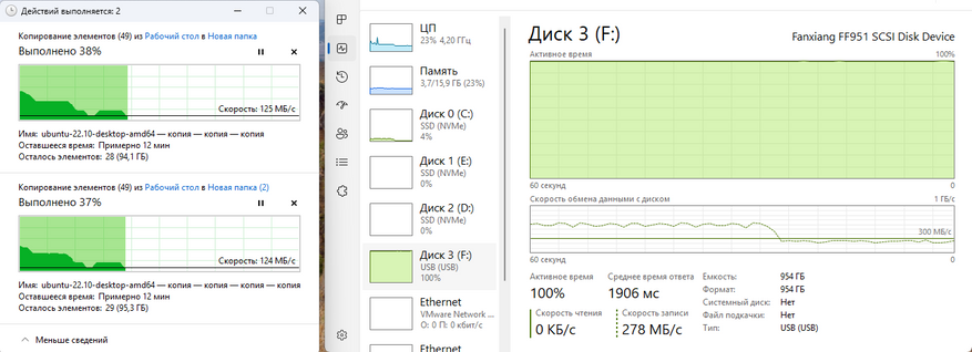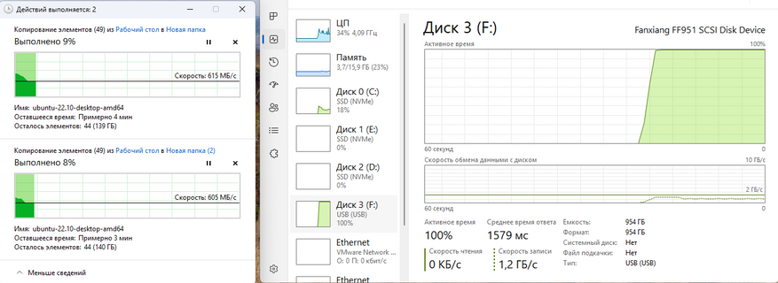 Я не просто так повторил тест на скорость записи трижды. Первые два теста производились при использовании порта Type-C,