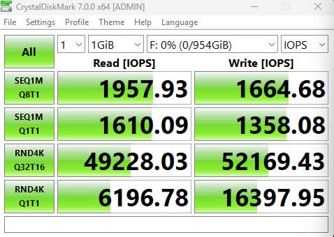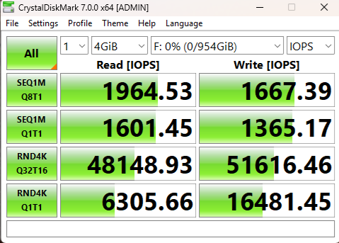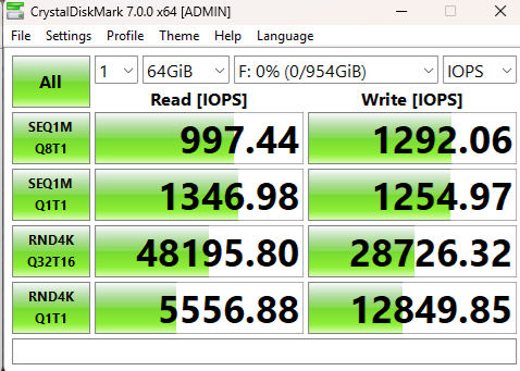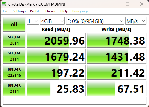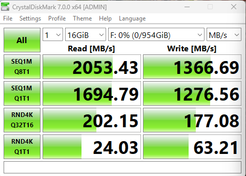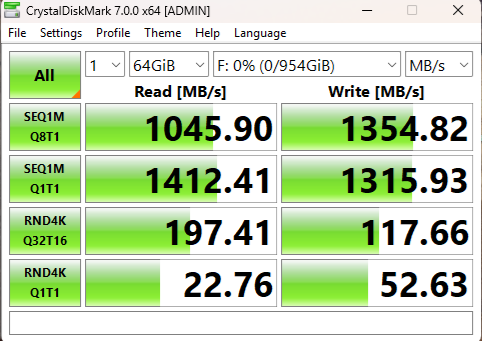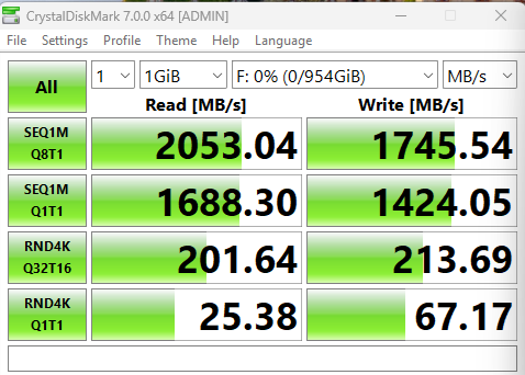 Тут мне особо нечего сказать, 1000+ баллов это обычный результат для внешних SSD на контроллере SM2320.