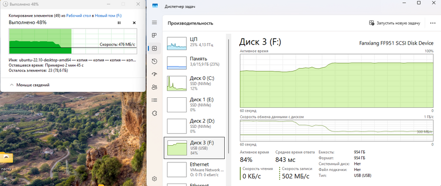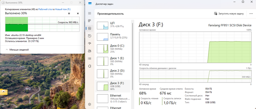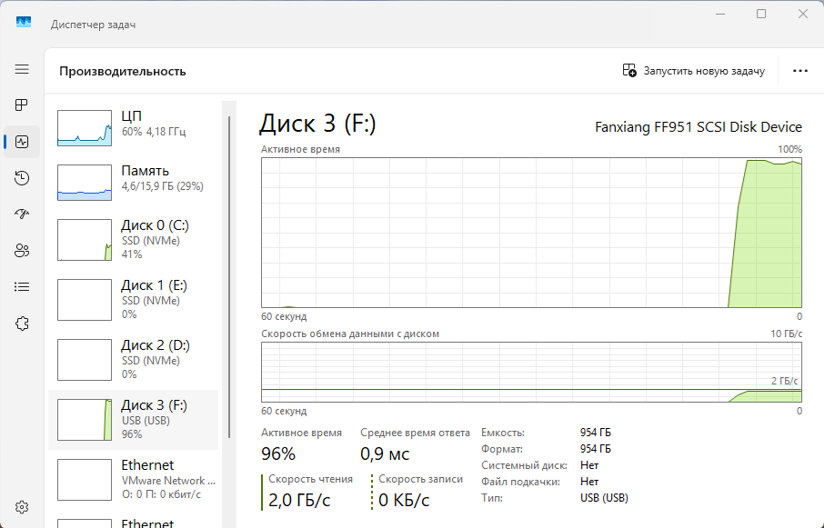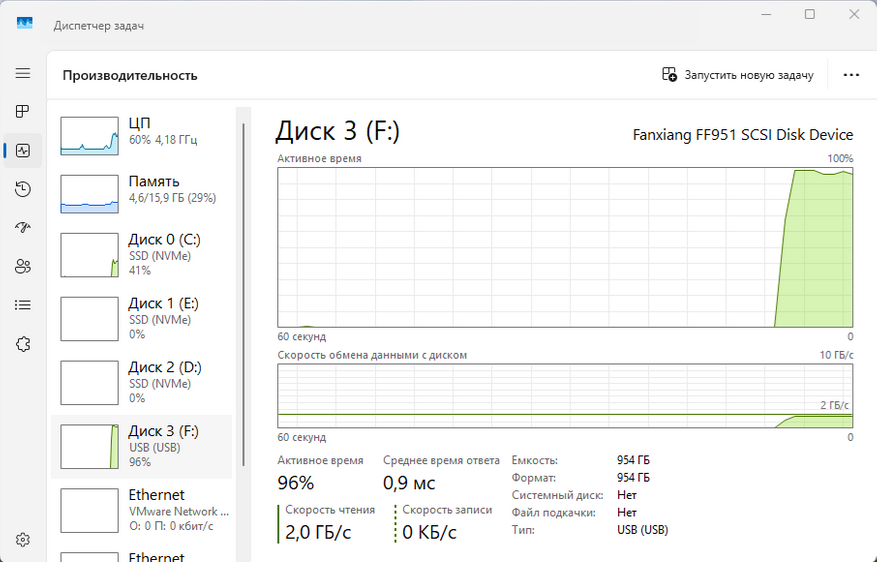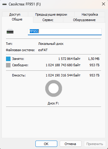 Пользователю доступно 953ГБ, а SSD ожидаемо отформатирован в ФС exFAT, для совместимости с мобильными устройствами, такими как смартфоны.