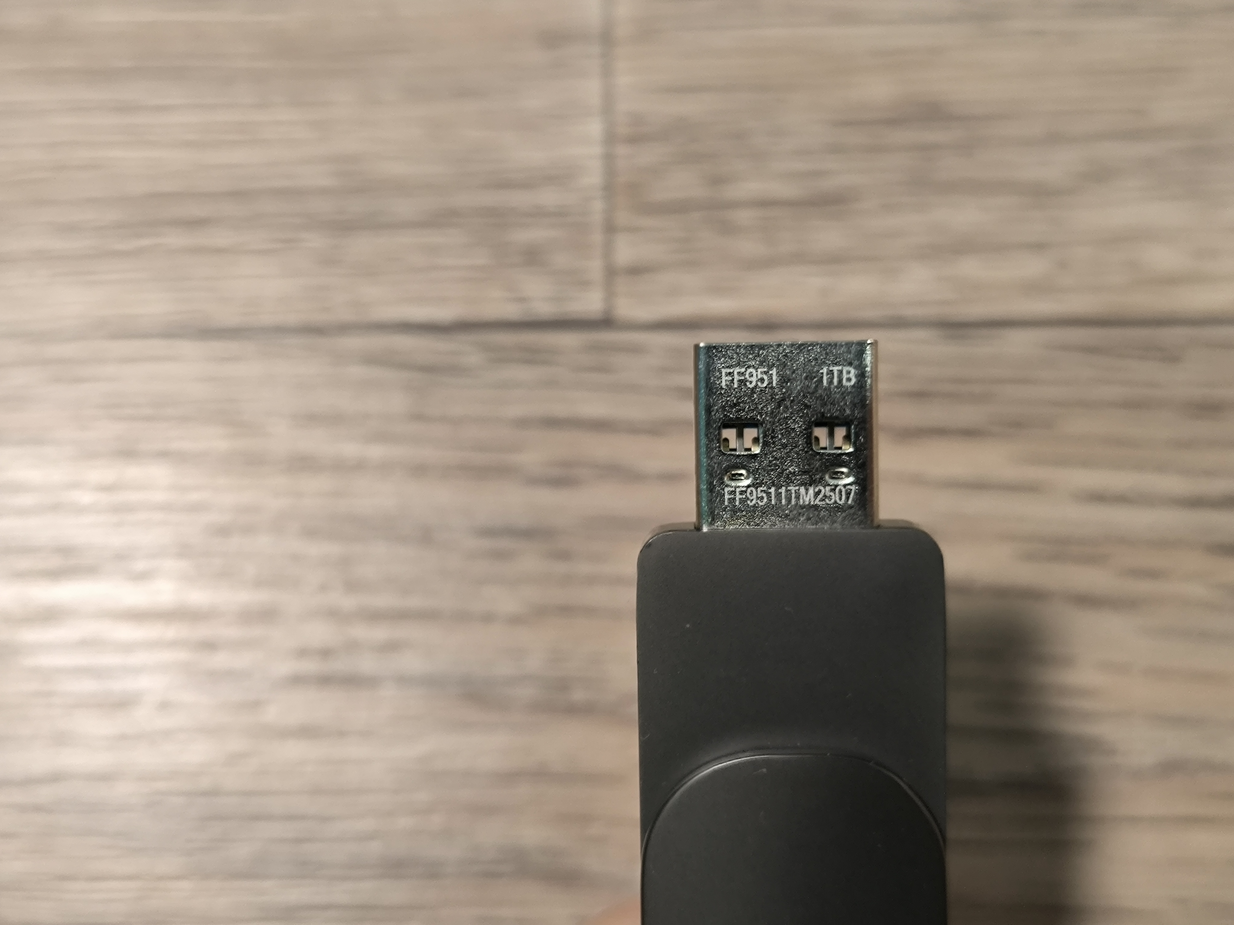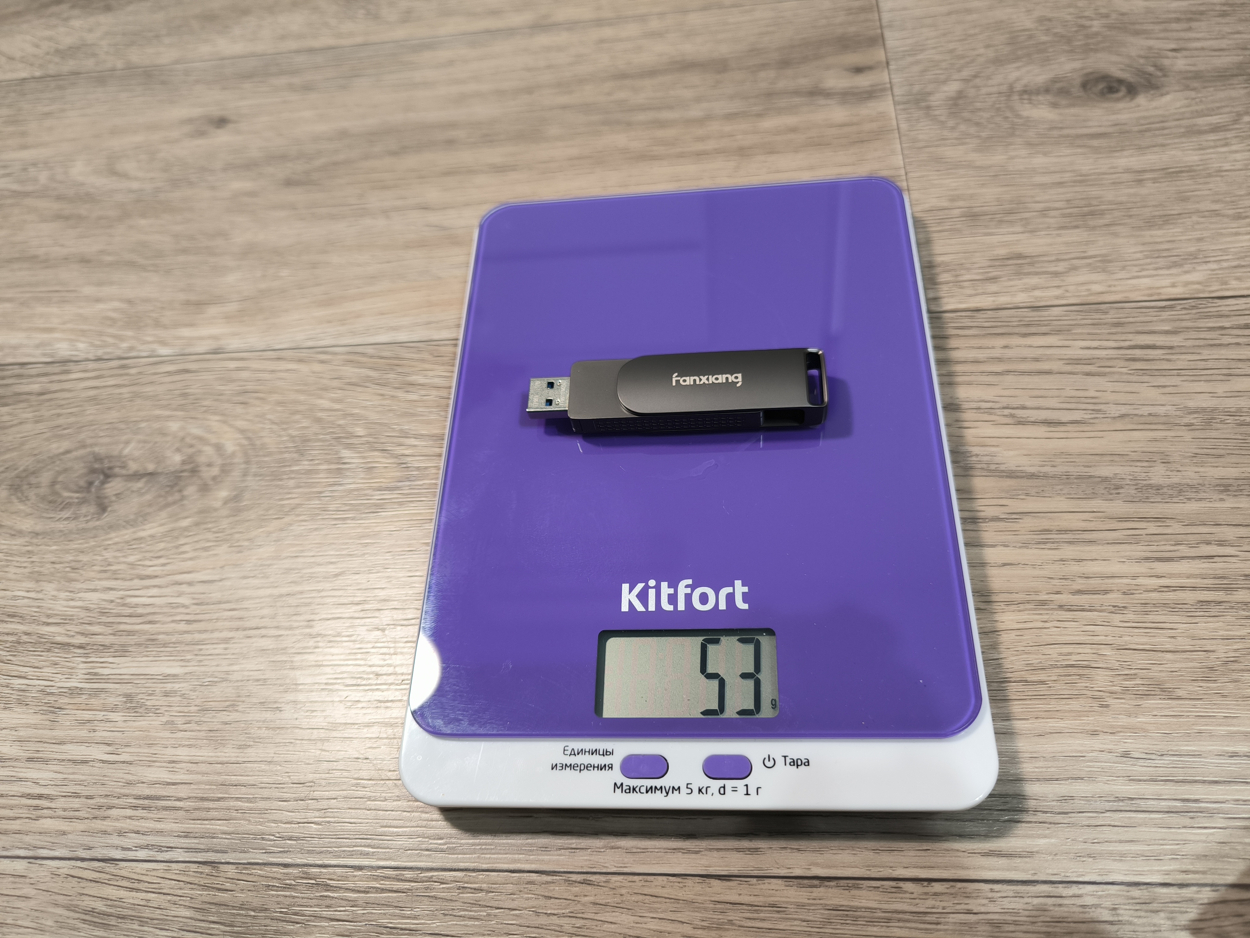 Реальный вес накопителя соответствует заявленному производителем значению. Маркировка с обозначением модели, а также информация о ёмкости накопителя, нанесена на разъём USB-A. Кстати, на коробке, на разъёме, и по SMART, накопитель именуется как FF951, а продаётся под наименованием F951.