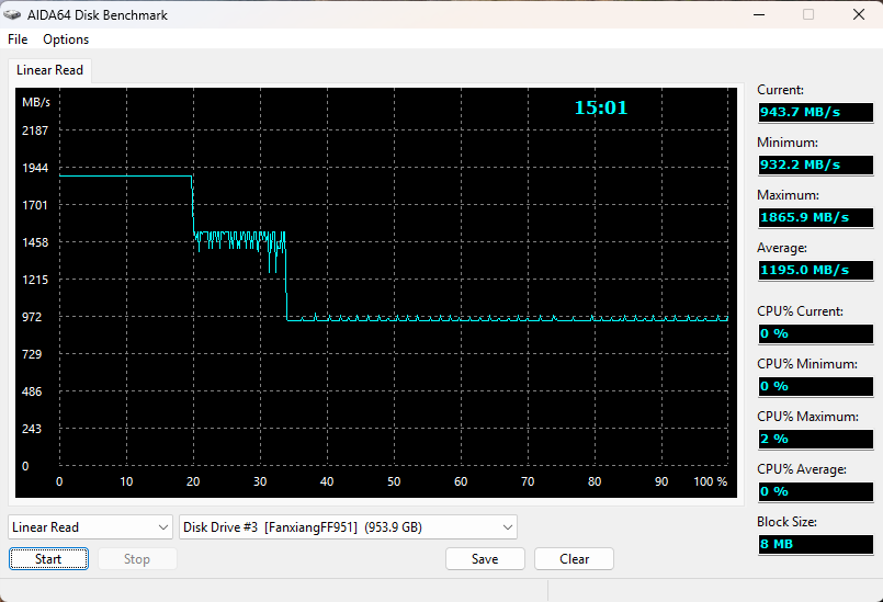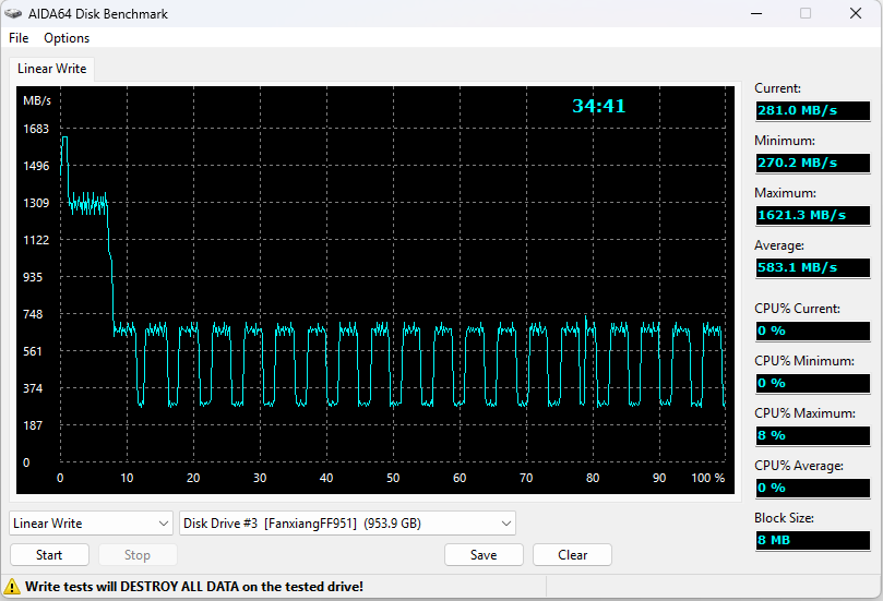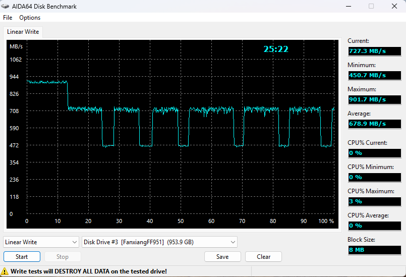 Здесь я повторил тот же сценарий, который был во время тестирования скорости линейной записи.