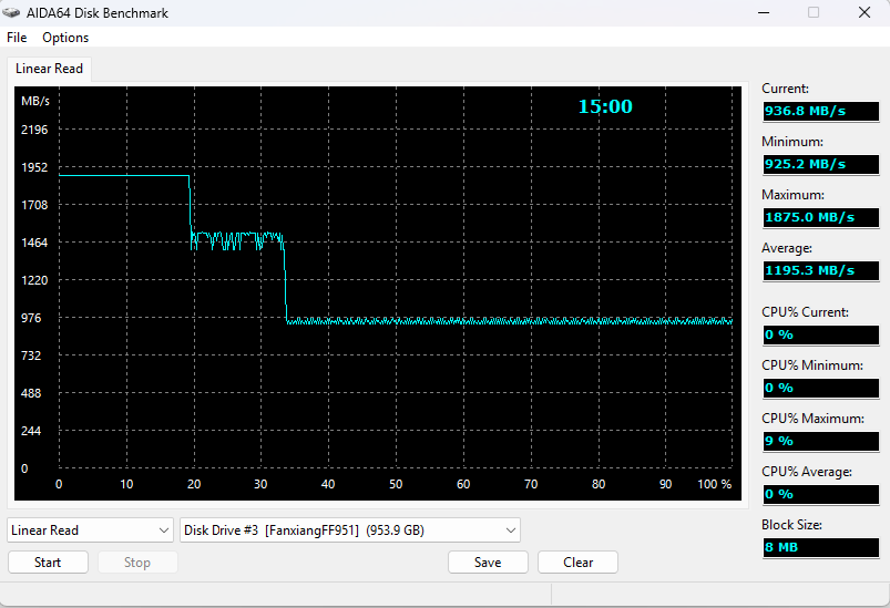 Рассмотрим теперь как покажет себя накопитель при линейном чтении ранее записанных данных, так как нагрев в режиме чтения должен быть даже выше.