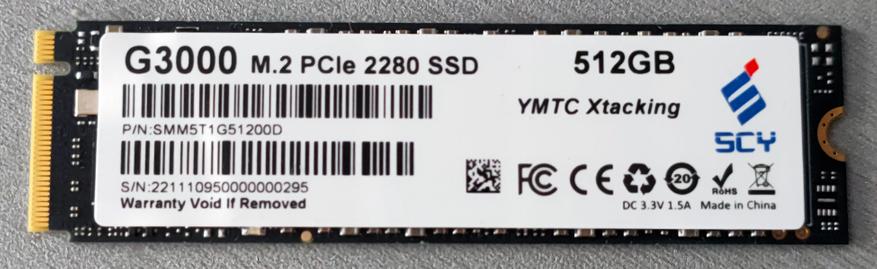 OEM SSD китайского происхождения SCY G3000 512 ГБ (PCIe Gen3): Maxio MAP1202 здорового человека