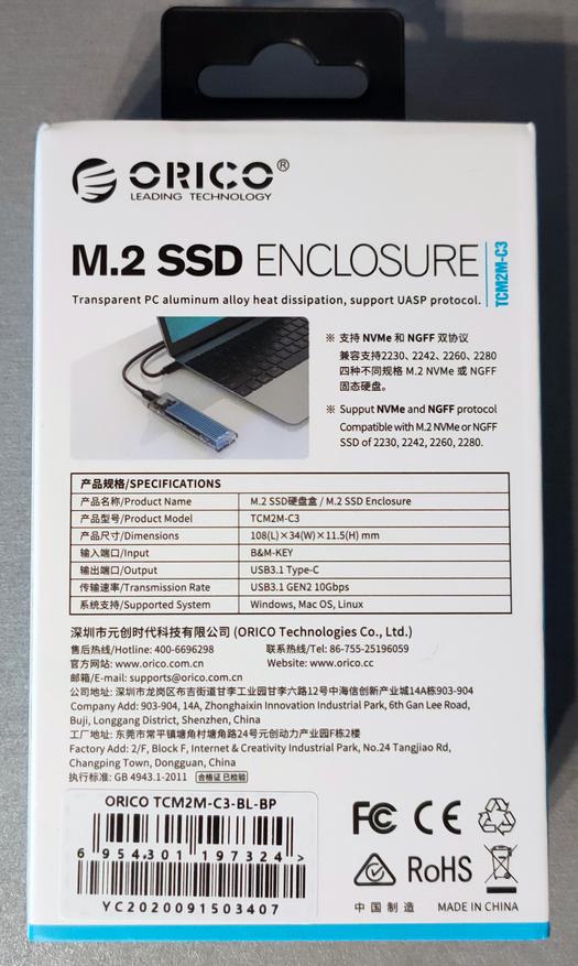 Первый взгляд на USB-коробочку Orico TCM2M-C3, поддерживающую как NVMe, так и SATA SSD
