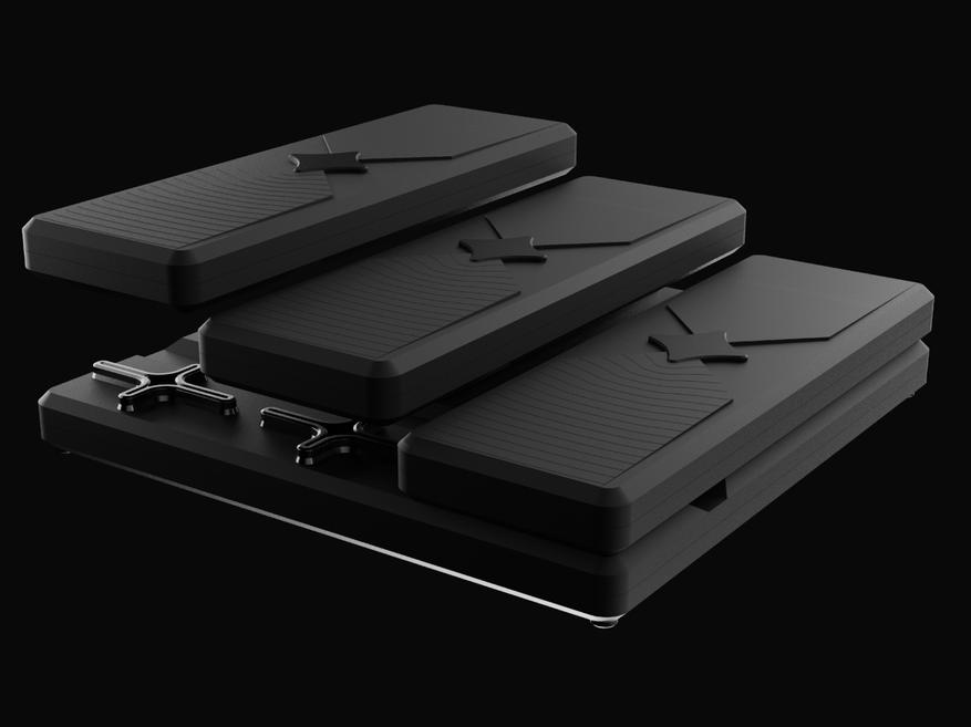Корпусные элементы каждого слоя выполнены из АБС-пластика методом литья под давлением. На нижней части базовой платформы расположены противоскользящие накладки для устойчивого размещения на рабочей поверхности. Конструкция рассчитана на стационарное использование на столе в связке с ноутбуком или монитором.