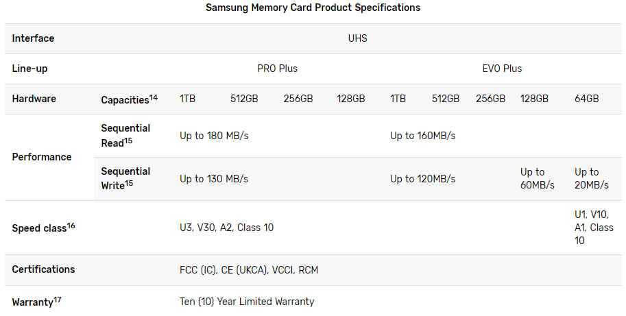 PRO Plus будет стоить от 24,99$ за 128 ГБ до 153,99$ за 1 ТБ, а EVO Plus — от 12,99$ за 64 ГБ до 131,99$ за 1 ТБ. Эти карты могут похвастаться высокой производительностью и большим объемом памяти, идеально подходящие для создателей контента и техноэнтузиастов.