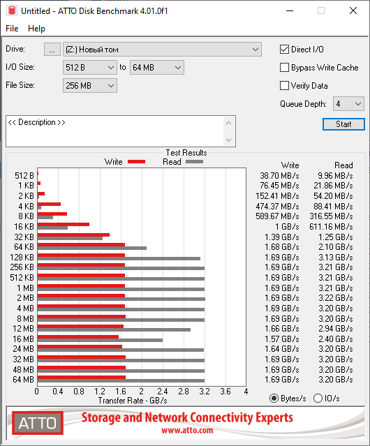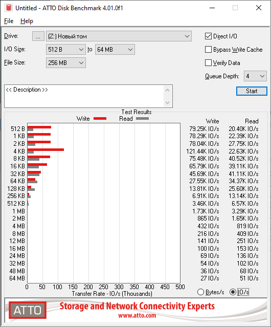 Тестирование при помощи утилиты ATTO Disk Benchmark 4.01.0f1
