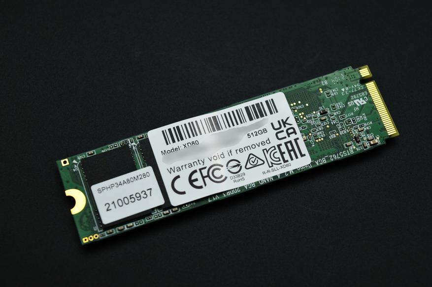 Твердотельный накопитель SSD Silicon Power XD80 выполнен в виде платы M.2 2280, работает под управлением контроллера Phison PS5012-E12, оборудована интерфейсом PCIe Gen3x4 имеет поддержку протокола NVMe 1.3. Верхняя поверхность накрыта теплораспределительной пластиной черного цвета, на которой присутствует логотип «Power X». Пластина изготовлена из алюминия, имеет толщину 0.5 мм, она закрывает контроллер и флеш-память. Конструктивно пластина практически плоская и лишена рельефа.