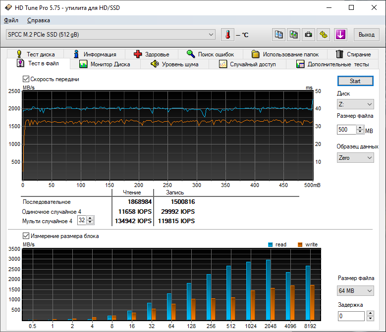 | Макс. устойчивая скорость последовательной записи, Мбайт/с | До 3000 |