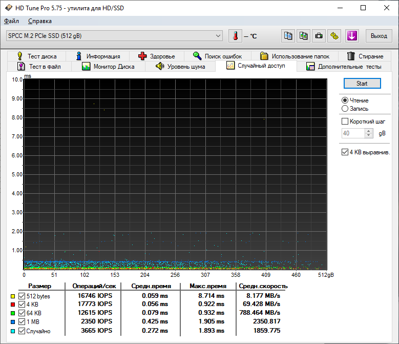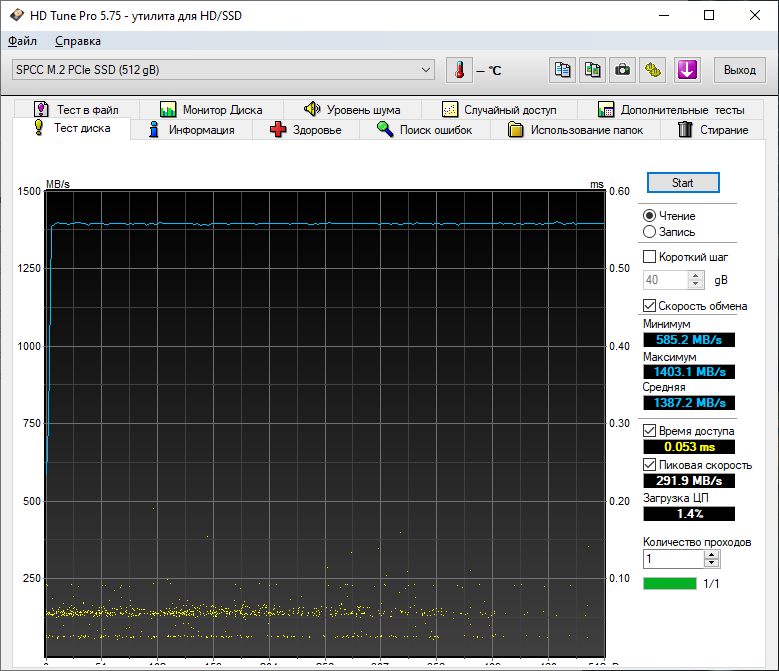 Тестирование при помощи утилиты HD Tune Pro 5.75