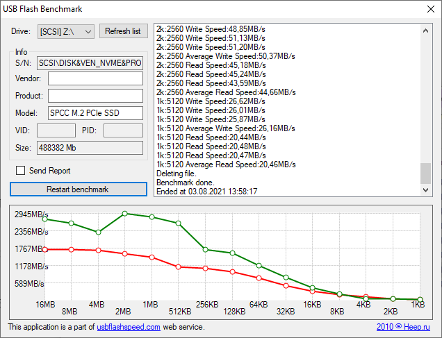 Полученный результат говорит, что теплорассеивающая пластина не способна эффективно охлаждать устройство при продолжительных нагрузках, в связи с чем пользователю необходимо задуматься о приобретении дополнительного охлаждения, в случае продолжительных нагрузок на Silicon Power XD80.