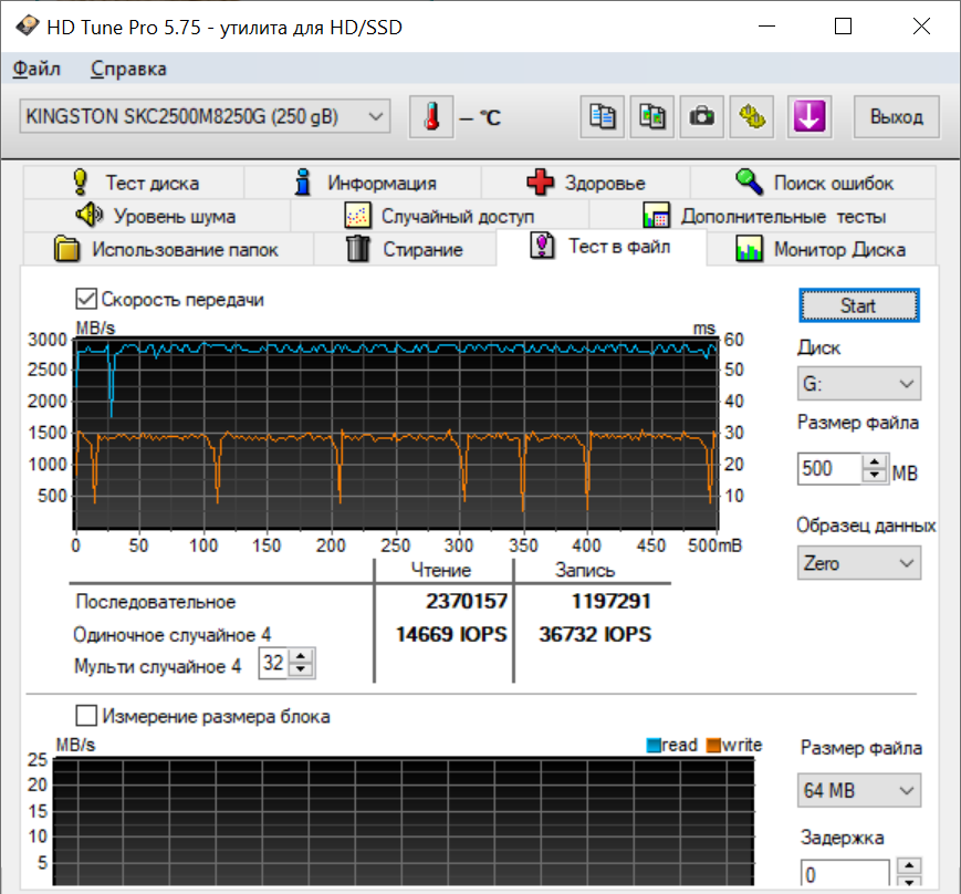 Запись с накопителя KINGSTON SKC2500M8250G на KINGSTON SKC2500M8250G