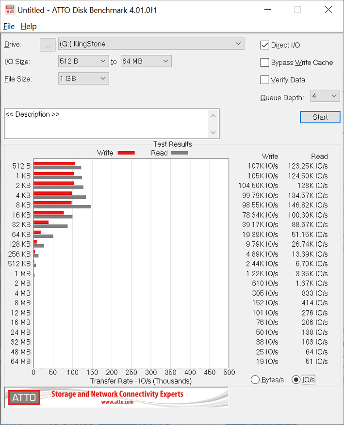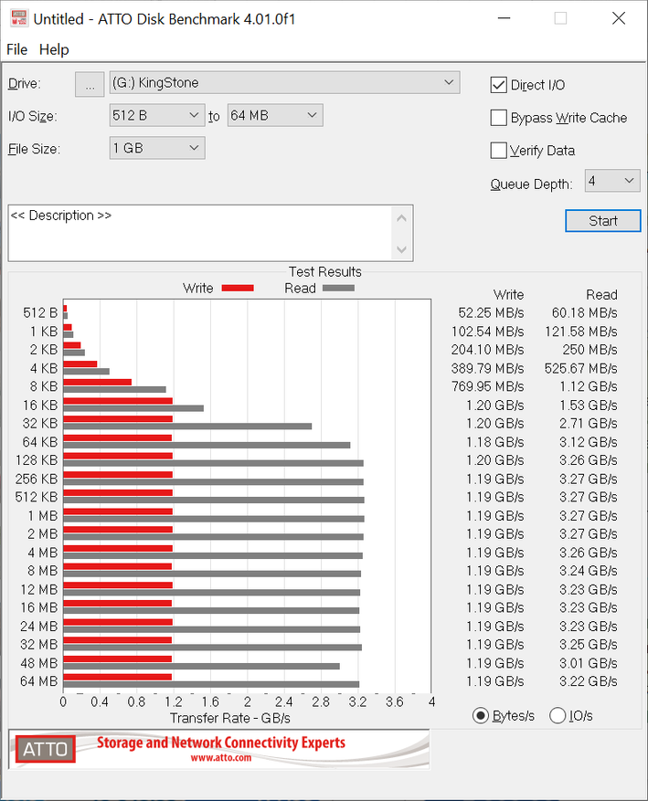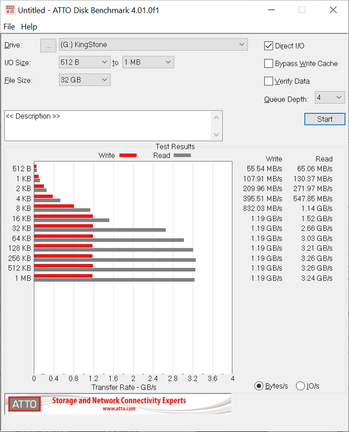 Результаты тестирования полученные при помощи утилиты ATTO Disk Benchmark 4.01.0f1