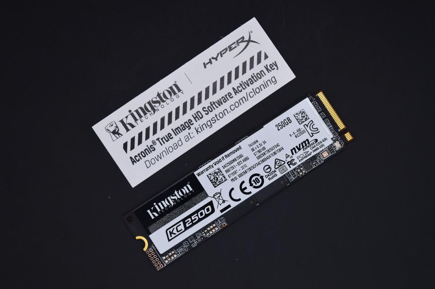 В комплект поставки, помимо SSD Kingston NVMe PCIe KC2500 входит картонная карточка, содержащая код активации приложения Acronis True Image HD.