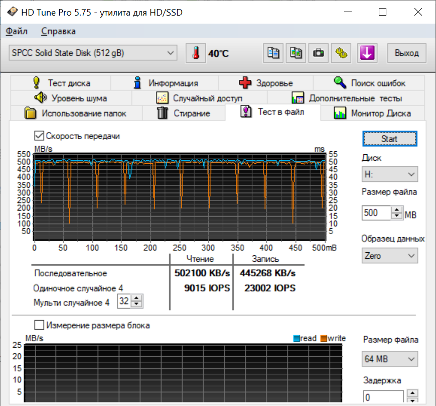 Для получения более реальных результатов были произведены тесты скорости чтения/записи информации с/на SSD Silicon-Power Ace A55.