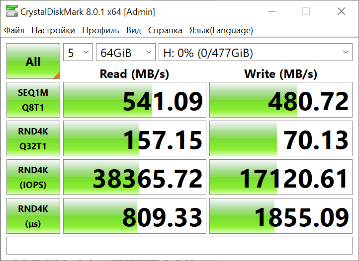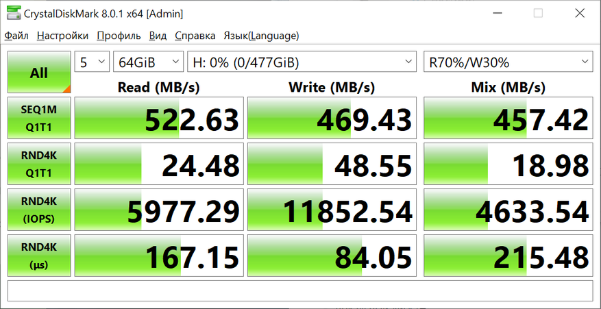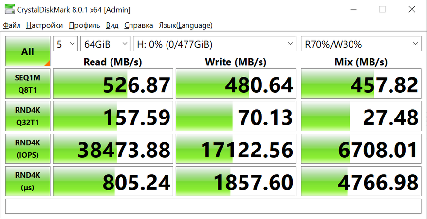 Тестирование при помощи утилиты CrystalDiskMark8.0.1