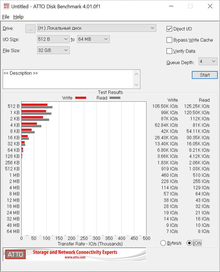 Тестирование при помощи утилиты ATTO Disk Benchmark 4.01.0f1