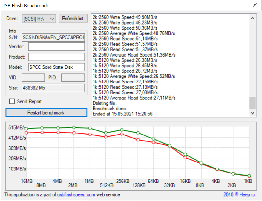 Тестирование при помощи утилиты USB Flash Benchmark