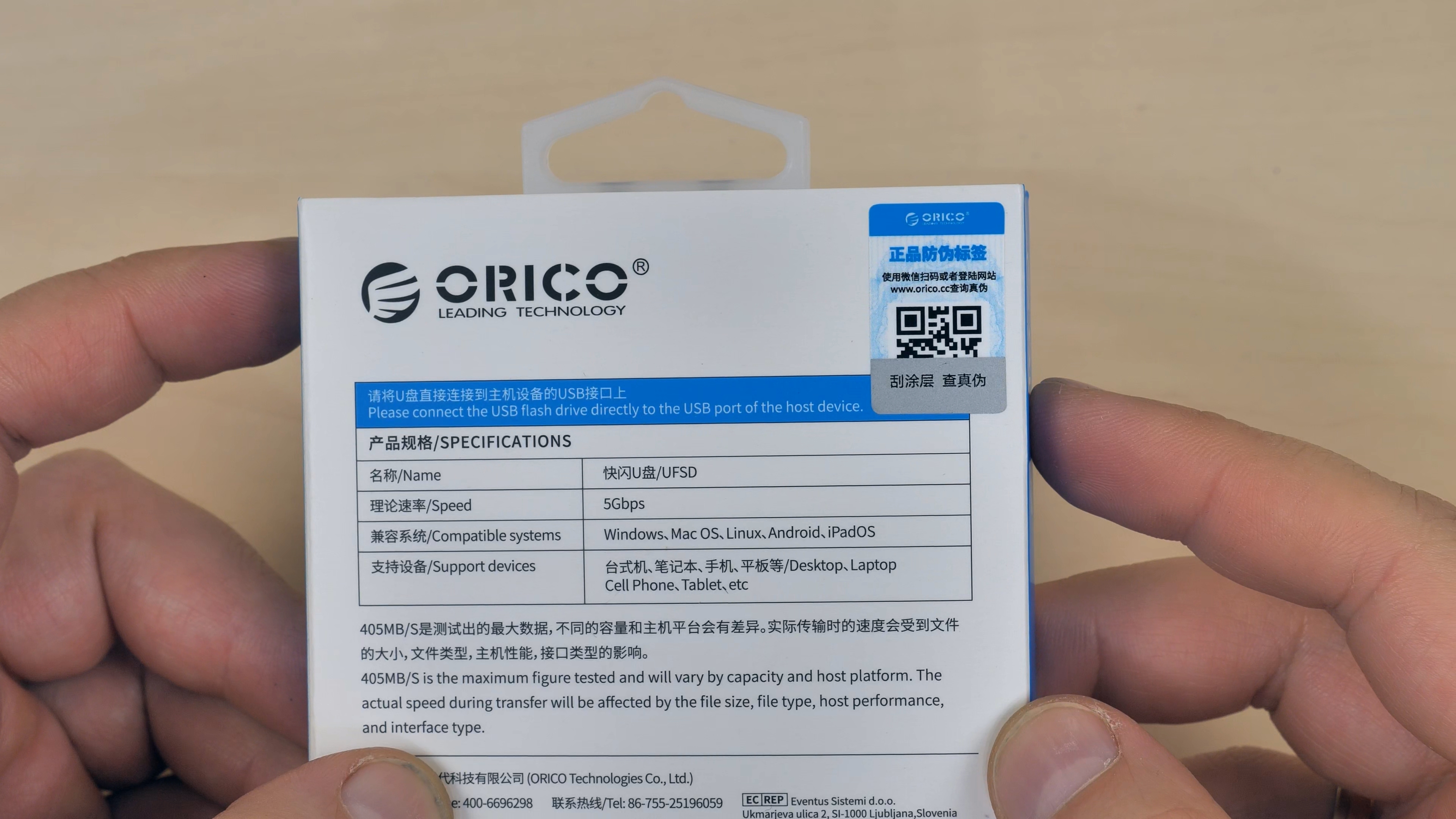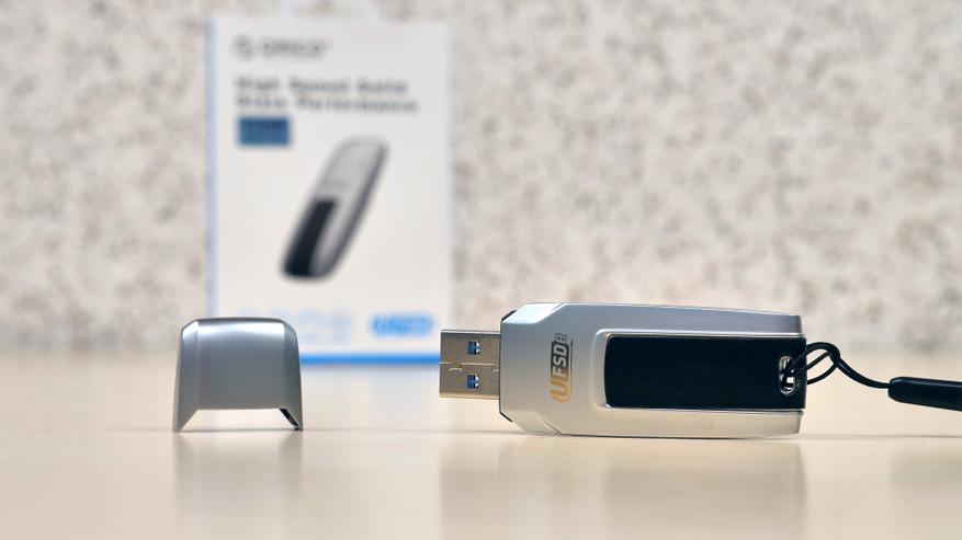 ORICO UFSD-C — это высокоскоростной накопитель в формате классической USB‑флешки, но только с заметно большими скоростями чтения и записи, присущими SSD‑накопителям. Скорость записи производитель обещает до 350 МБ/сек, а чтения и вовсе до 411 МБ/с.
