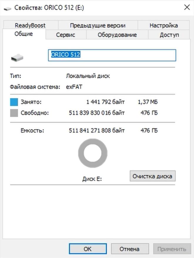 Для тестирования накопитель был подключён к USB-А‑порту компьютера версии USB 3.2 Gen 2, чтобы скорость передачи данных не ограничивалась интерфейсом. Проводник Windows показал объём 476 ГБ. Судя по отзывам на AliExpress, далеко не все пользователи понимают, как рассчитываются гигабайты, и иногда обвиняют продавца в мошенничестве. Производитель указывает объём данных в байтах — в нашем случае это 511 миллиардов байт. Чтобы перевести байты в килобайты, мегабайты, гигабайты или терабайты, нужно делить не на 1000, а на 1024. Это связано с тем, что в одном килобайте — 1024 байта (а не 1000, как в десятичной системе).