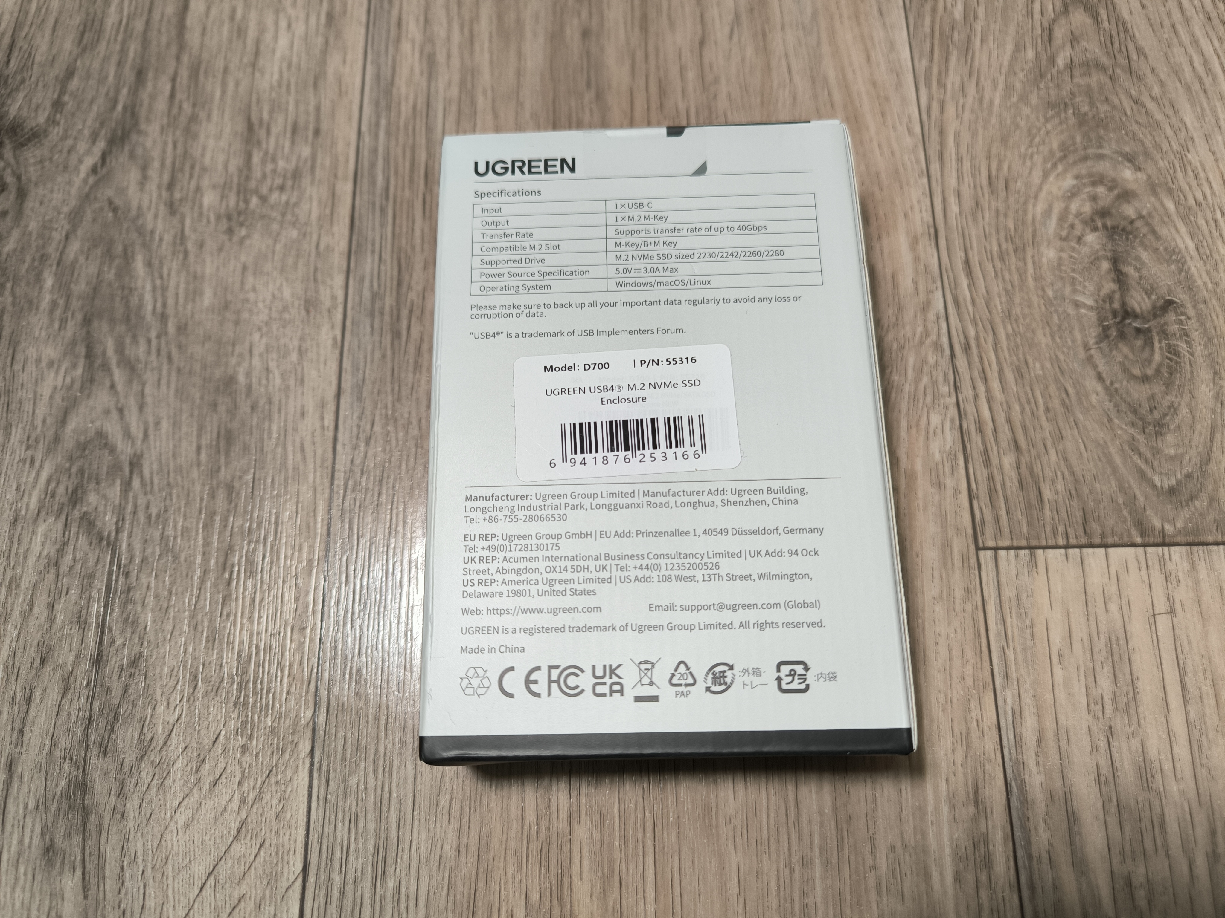 Ugreen D700 поставляется в фирменной коробке. Кстати, логотип Ugreen уже некоторое время назад стал изображаться на чёрном фоне вместе привычного зелёного, и здесь именно такой обновлённый вариант логотипа.