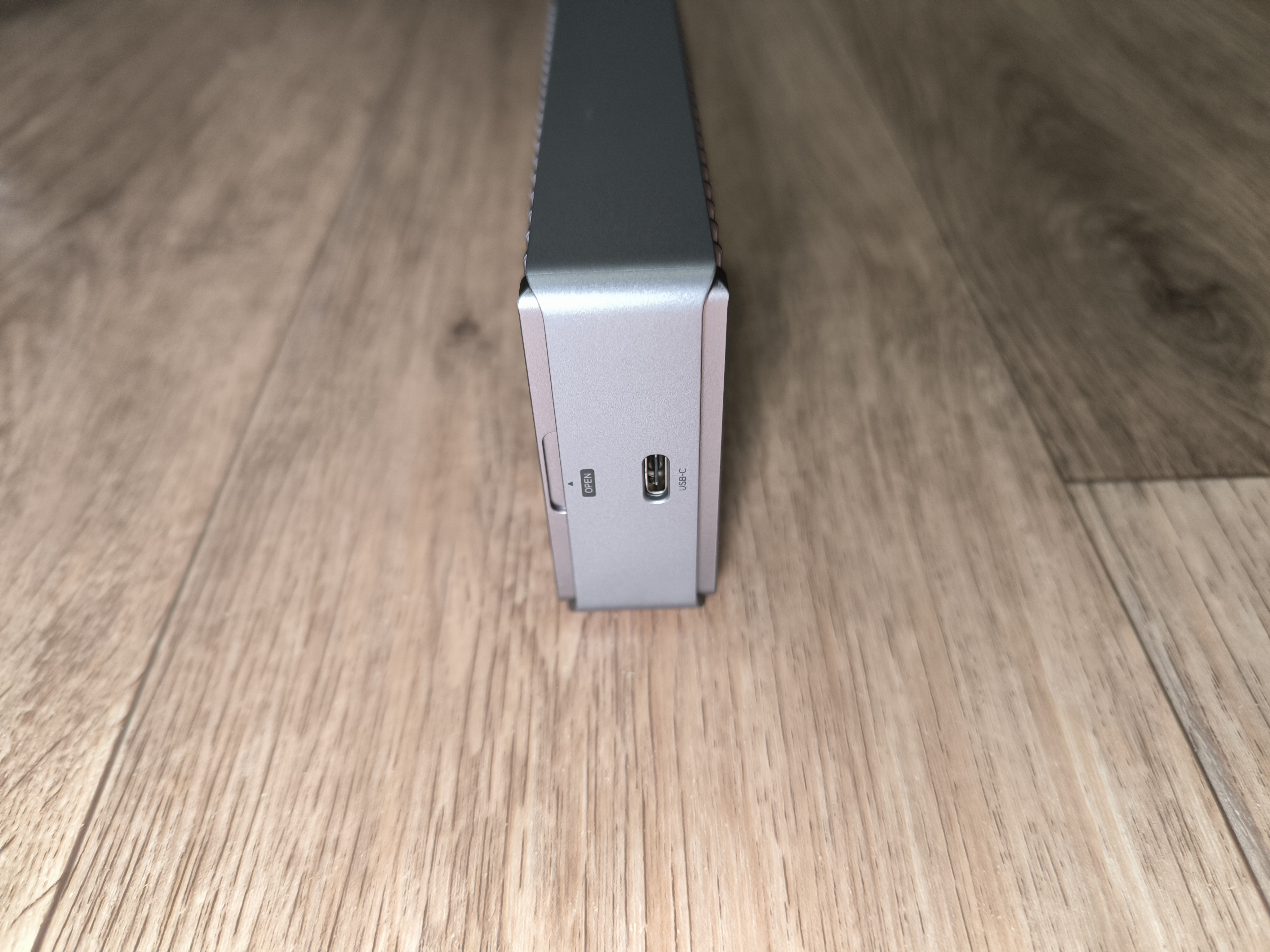 Съёмная крышка крепится на двух винтах. На противоположной стороне бокса всё выглядит так же, только нет винтов. На одной боковой стороне находится порт Type-C, а на противоположной- индикатор активности.