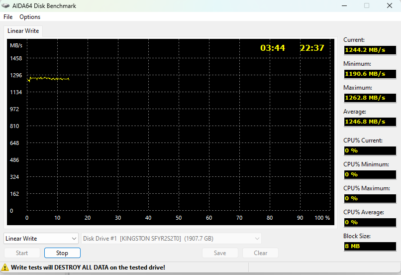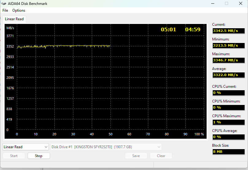 Если произвести тест на скорость линейной записи/линейного чтения в AIDA64, то получаются аналогичные результаты: