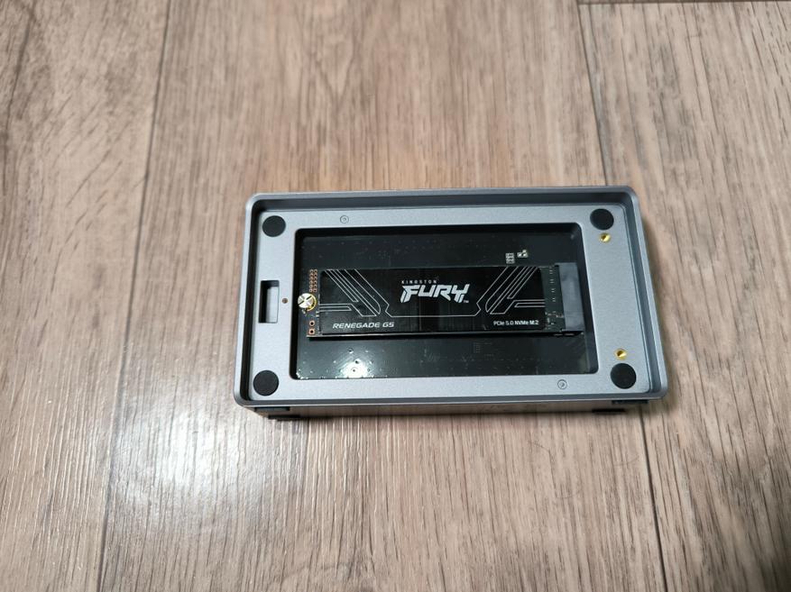 Я не стал мелочиться, и сразу же взял топовый NVMe SSD Kingston FURY Renegade G5, с объёмом 2ТБ (SFYR2S/2T0). Накопитель поддерживает работу через интерфейс PCI-E Gen5, и способен развить скорости чтения/записи в районе 14000МБ/c, что многократно превышает возможности бокса Ugreen D700. В качестве компьютера, я буду использовать мини-компьютер Minisforum UM760 Slim, на базе процессора AMD Ryzen 5 7640HS, и как раз поддерживающий USB4 (40Гбит/c). Про этот мини-компьютер я подробно рассказывал в данном обзоре.