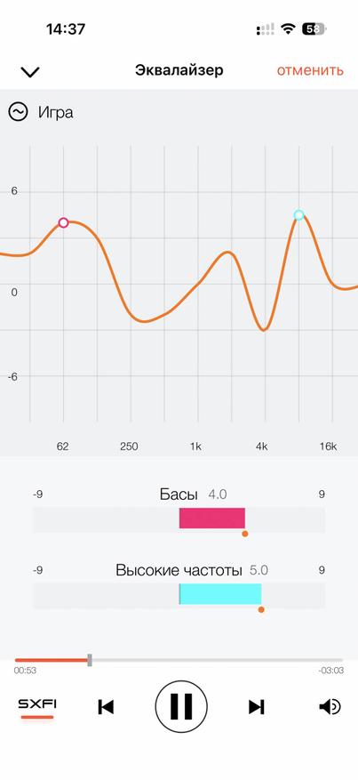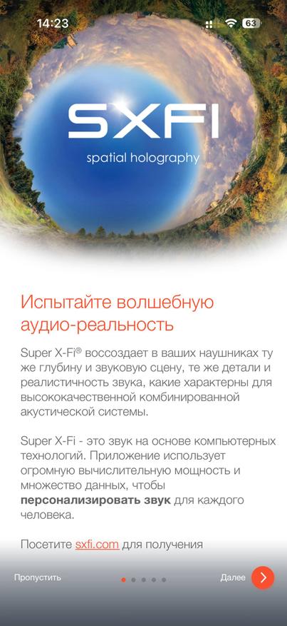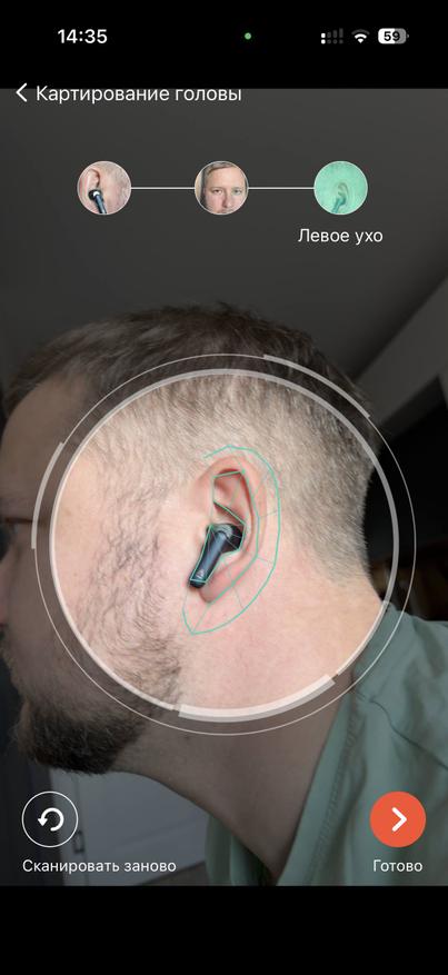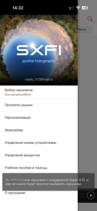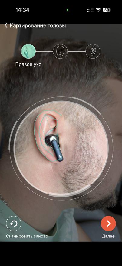 Для начала скачал приложение SXFI. В нем программа сразу нашла наушники корректно по модели, хотя их не было в списке ручного поиска. Затем можно настраивать эквалайзер в персонализированном режиме, и программа предлагает пройти сканирование вашей головы.