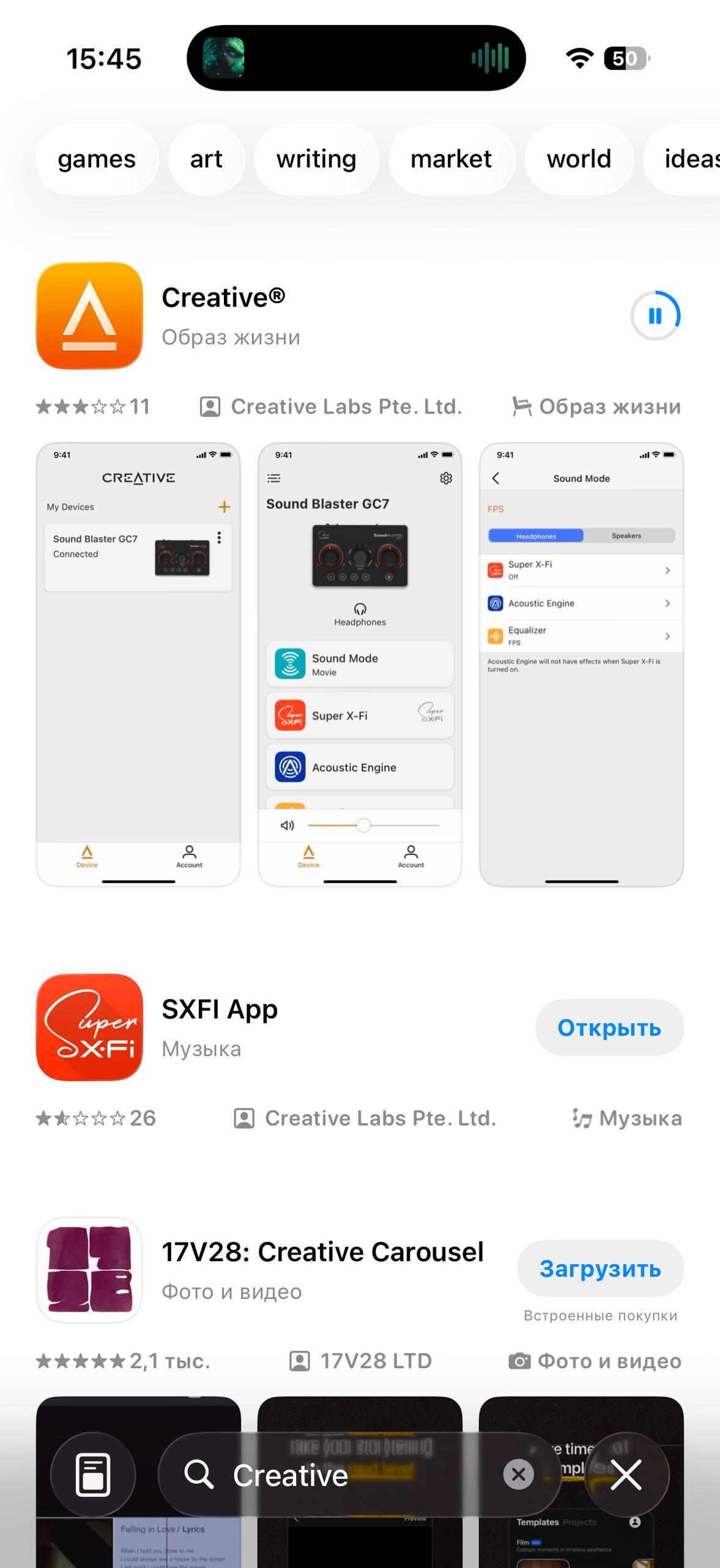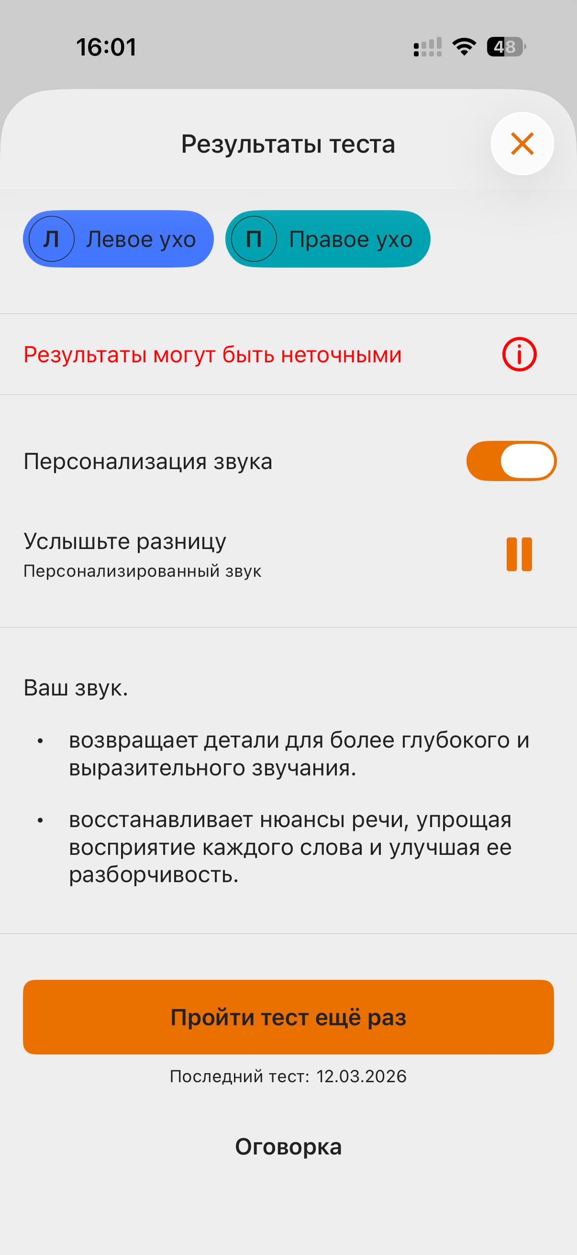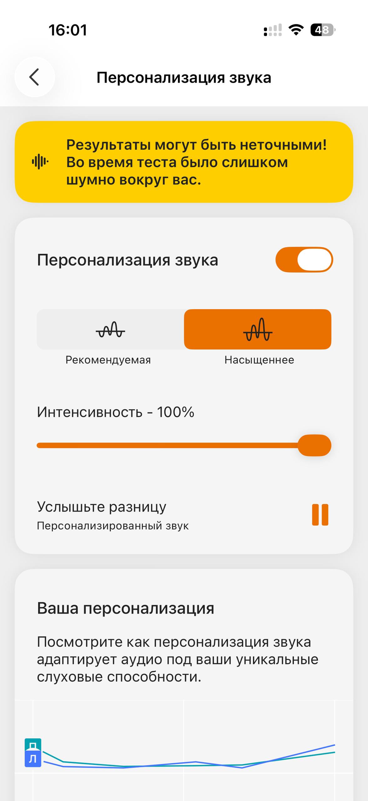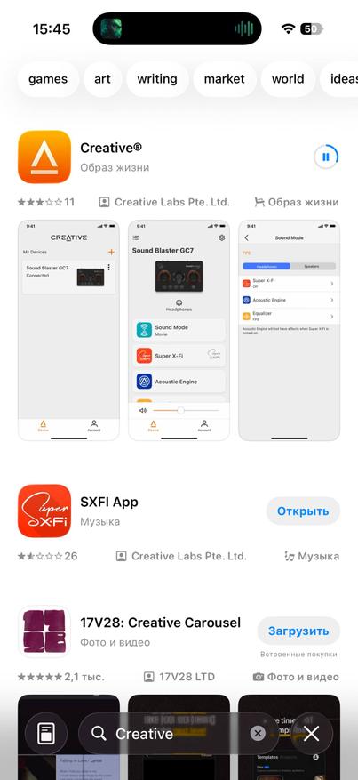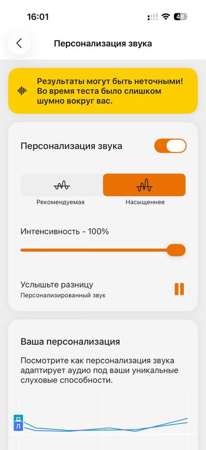 Компания предлагает еще одно приложение. Качаем приложение Creative и уже там можно пройти углубленный анализ вашего слуха, чтобы потом, исходя из результатов тестирования активировать встроенный улучшатель звука. Вот тут звучание действительно становится более насыщенным и звучным даже в стороннем плеере. То самое персонализированное звучание Mimi.