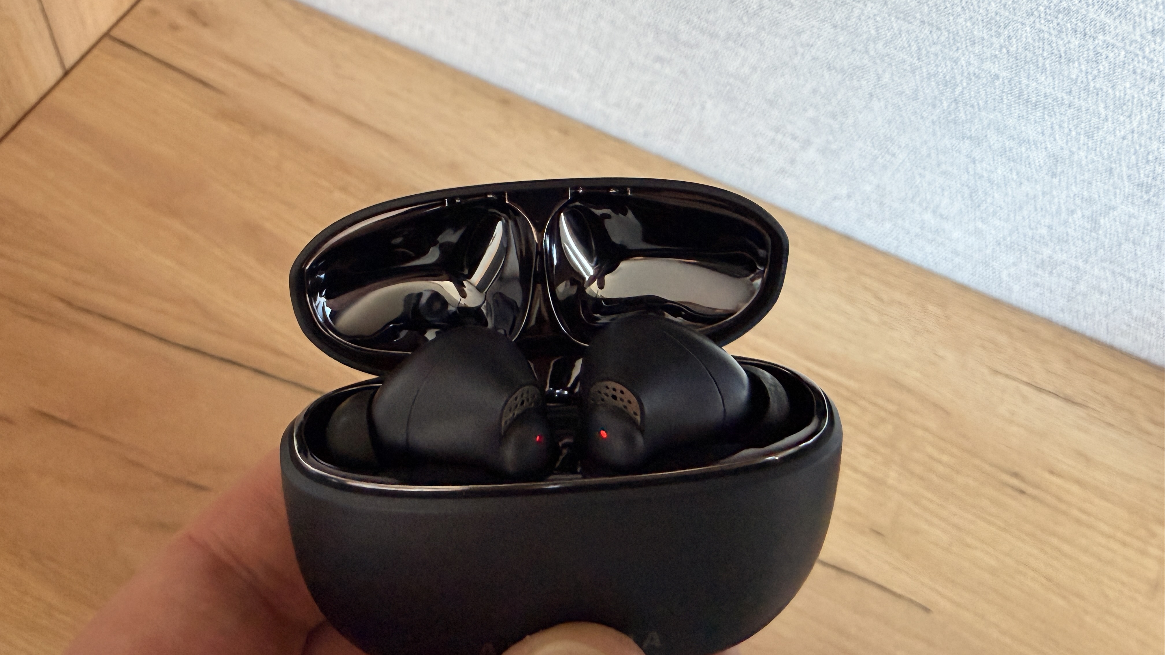 Наушники явно про настраиваемый звук, но есть и активное шумоподавление, хоть и не самое впечатляющее. А также они могут заряжаться по беспроводной зарядке. Автономность средняя, с активным шумодавом мне хватает на 5 часов, потом зарядка. При этом громкость я держу на уровне 80 — 85 процентов. Запас по громкости не велик. Индикаторы на ножке выполнены в классическом сине-красном стиле (даже вызвали определённую ностальгию, в последнее время производители отказываются от такого). Индикатор на нижней части кейса цветом указывает статус зарядки.