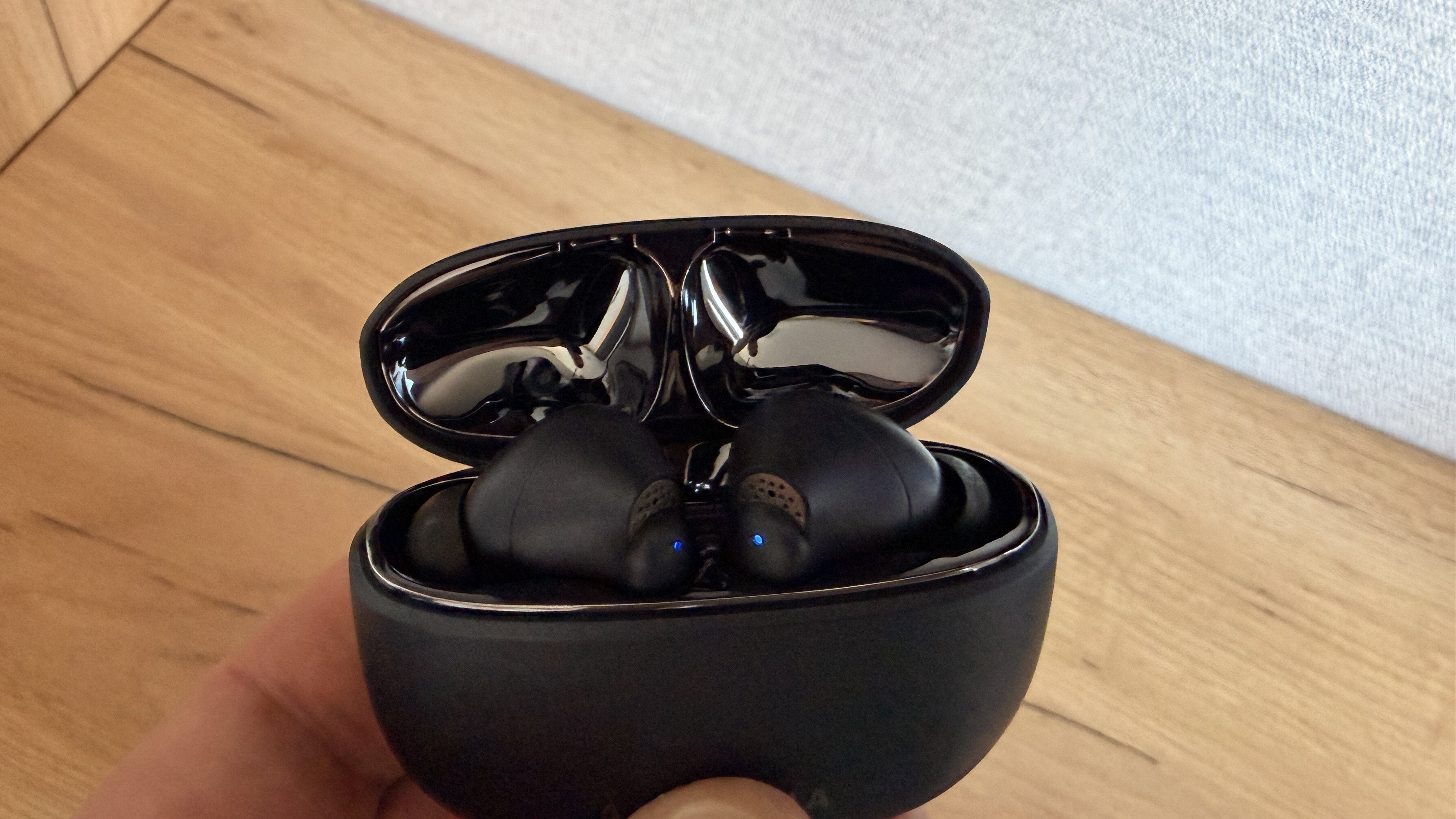 Кейс открывается одной рукой, в нишах под наушники вкладываются в соответствующие ниши.