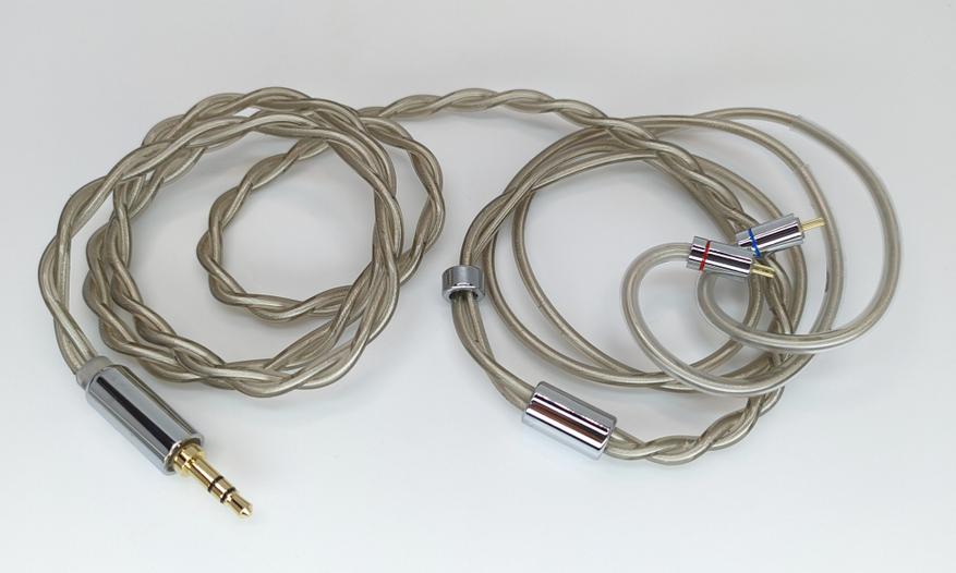 Добротный кабель с 200 медными нитями с посеребрением в каждой из двух жил. Немного портит впечатление отсутствие защиты от перегибов на разъеме джека, но компенсирует это эластичность самого кабеля. Есть кольцо регулировки разветвления. Опционально Explorer доступны к заказу с кабелем 3,5 разъемом и с балансным 4,4 пентакон.