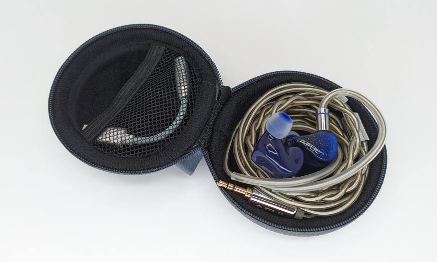 Также добавили к хороший кейс с интересным, как бы прорезиненным, немного напоминающим нубук материалом внешней отделки и с бархатистой внутренней. Есть кармашек для аксессуаров, но поместится вместе с наушниками с комплектным кабелем получится только простой ЦАПик типа FiiO JA11.