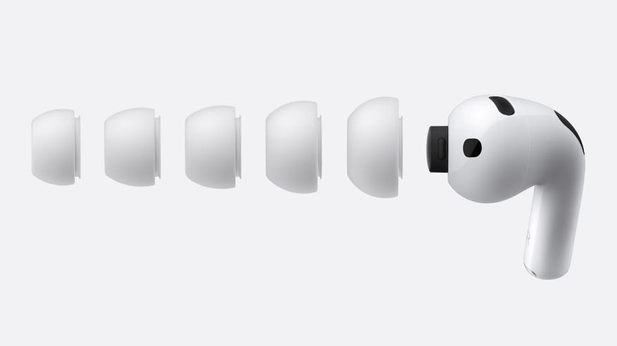 Форма наушников также претерпела изменения: каждый из них стал чуть компактнее, благодаря чему они сидят удобнее и менее заметны. Вместе с этим Apple увеличила выбор амбушюр — теперь пользователю доступно сразу пять вариантов насадок вместо трех, как это было раньше. Такой шаг делает AirPods 3 более универсальными и подходящими для ушей любой формы.