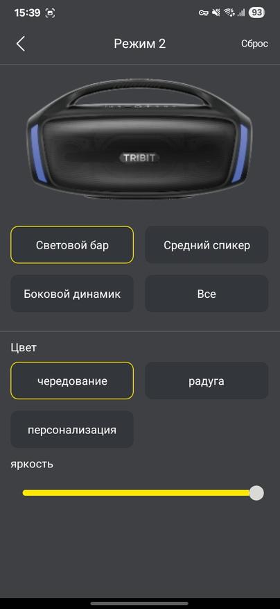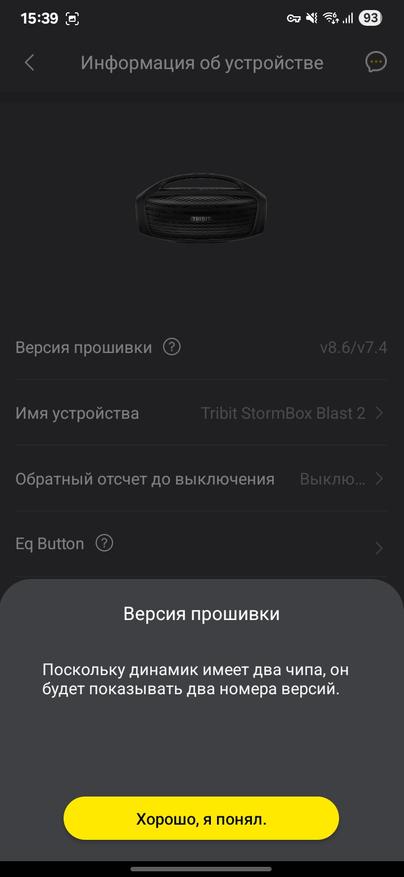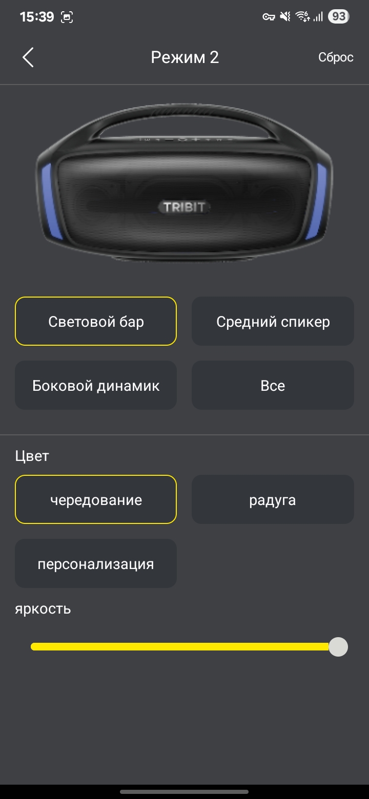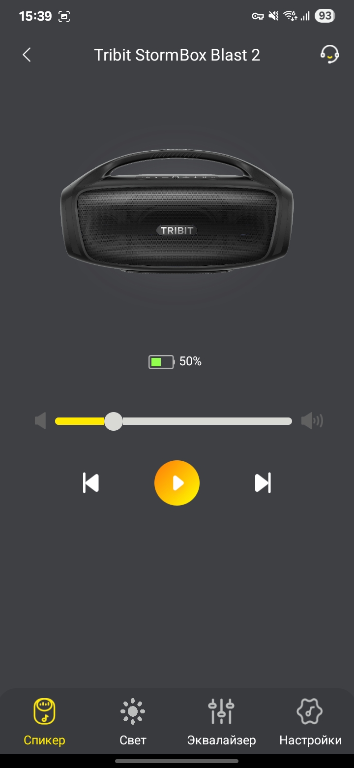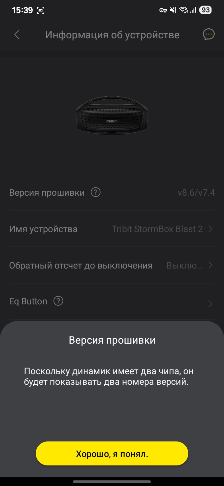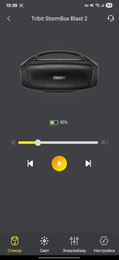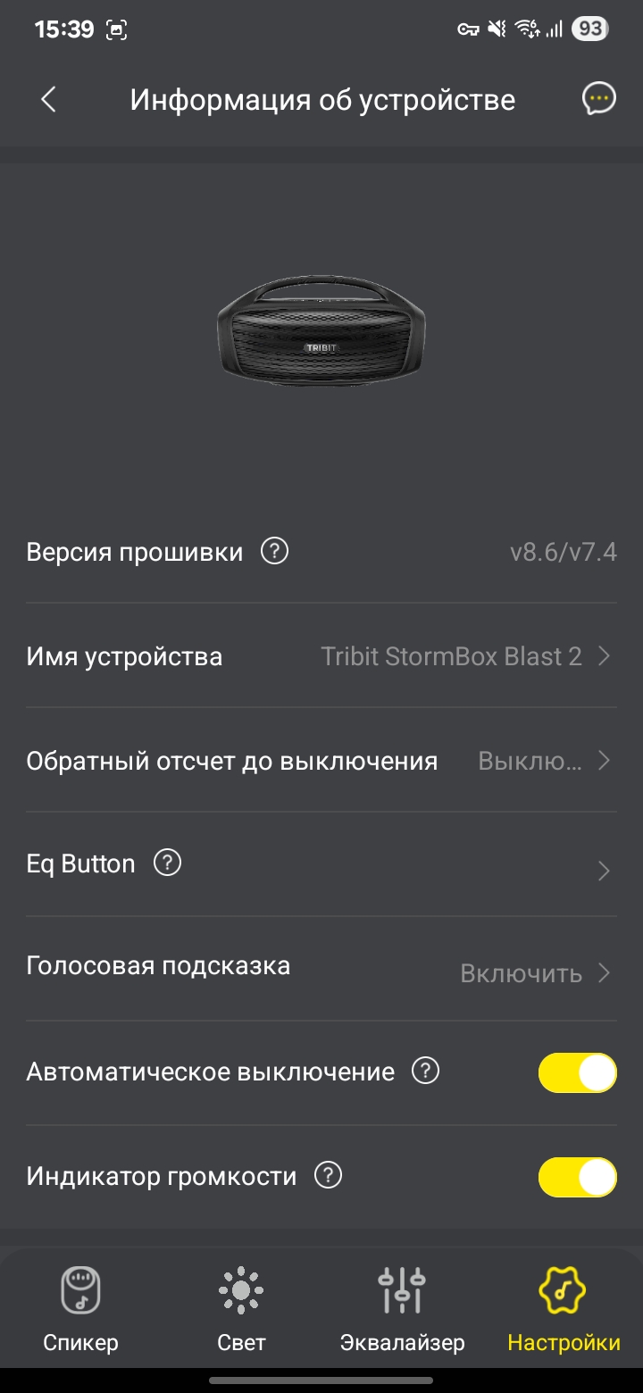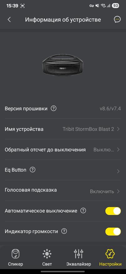 Колонка Tribit Stormbox Blast 2 поддерживает приложение на смартфон. Через него можно обновить версию встроенного ПО (судя по отзывам с 4PDA, обновление неплохо улучшают звучание). Можно настроить поведение светомузыки, можно поменять эквалайзер или настроить его под себя.