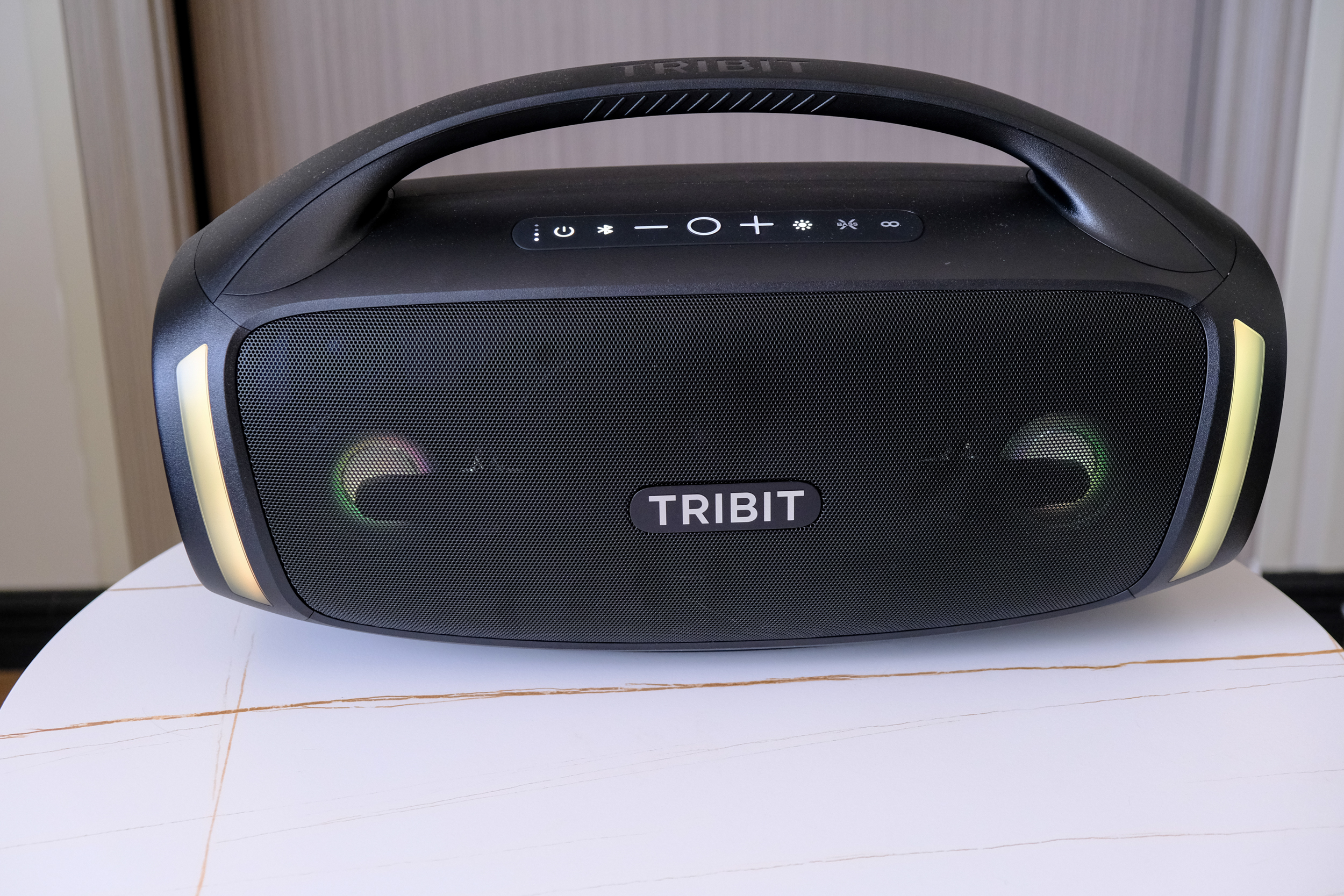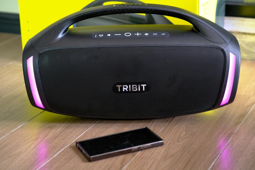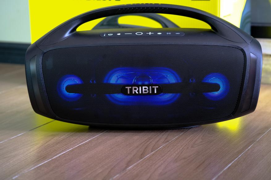 Tribit StormBox Blast 2 звучит мощно и напористо, особенно для портативной акустики. Даже на средней громкости колонка уверенно озвучивает большую комнату или открытое пространство, а при полной мощности превращается в полноценную уличную аудиосистему. Звук сбалансирован: басы глубокие и насыщенные, но не заглушают середину и верх. Сабвуфер действительно отрабатывает своё — нижние частоты ощутимы телом, особенно в режиме XBass, который добавляет плотности и напора, идеально подходящего для танцевальной и электронной музыки.