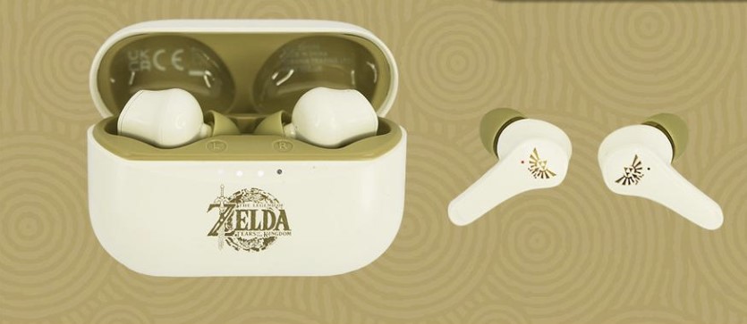 Наушники имеют подключение по Bluetooth 5.0, обеспечивают сбалансированный звук и могут работать до шести часов без подзарядки. В комплекте с ними идёт чехол для зарядки, который позволяет сделать ещё три дополнительных заряда. На каждом корпусе наушников изображён логотип Tears of the Kingdom, а сами наушники украшены знаменитой эмблемой Triforce.