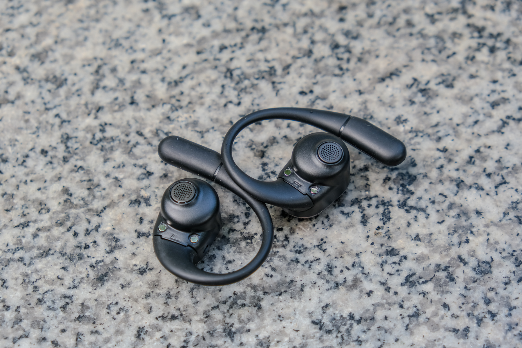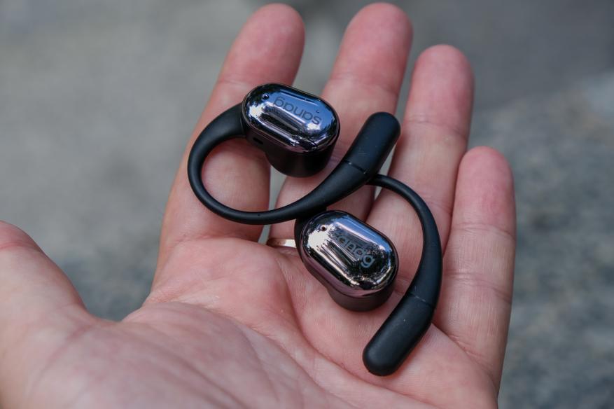 Самый важный и самый сложный вопрос в любом обзоре. Но тут наушники меня удивили. Звучат они достаточно неплохо, особенно учитывая, что они как бы и не находятся внутри ушного канала, но и не закрывают уши полностью. Если говорить сугубо ощущениями, то это очень похоже по звуку на то, когда у тебя на голове находятся полноразмерные наушники. Но при этом ты их не ощущаешь. Первое время — это весьма странно, но потом понимаешь, что это реально удобно.